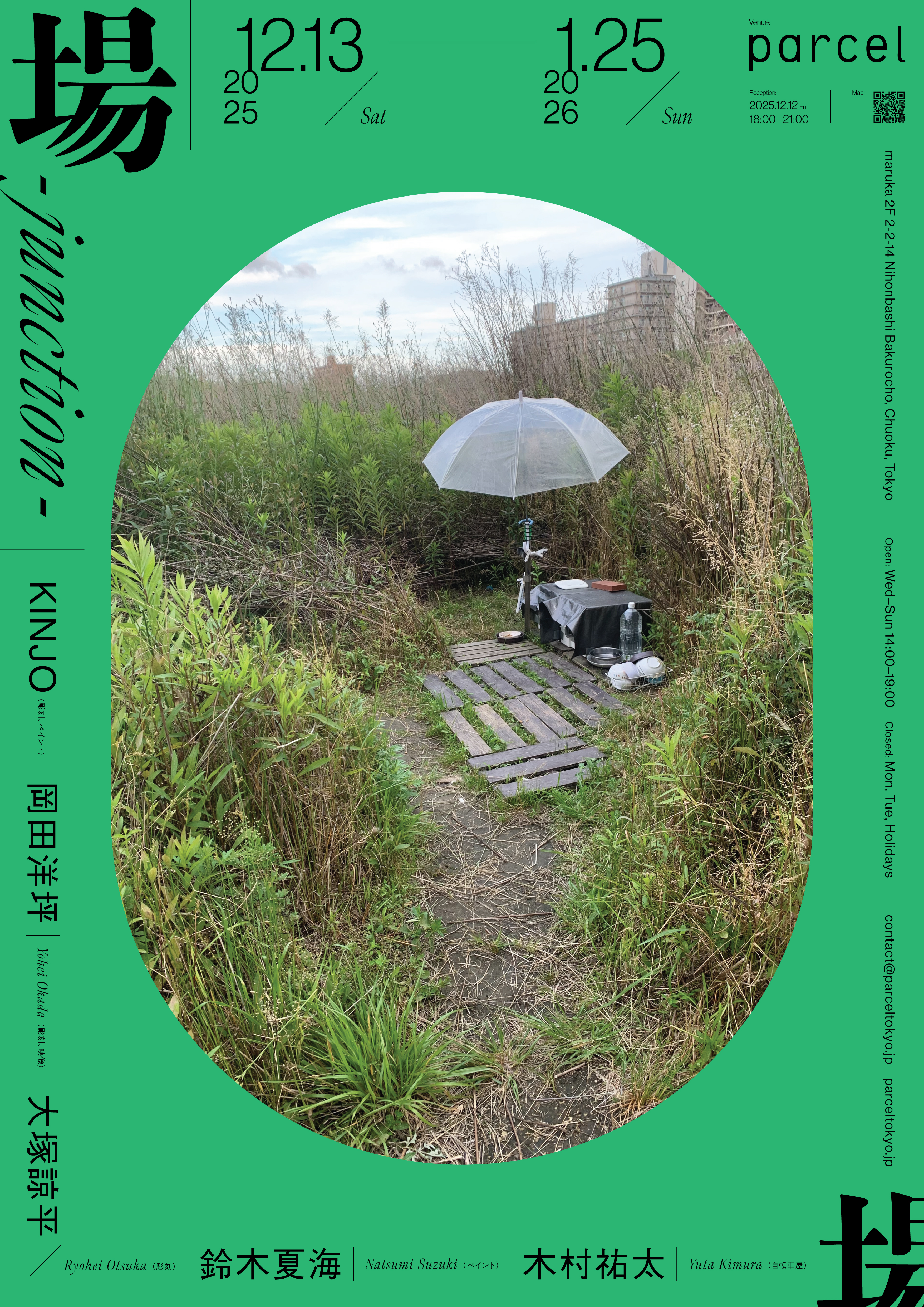 KINJO、岡田洋坪、大塚諒平、鈴木夏海、木村祐太によるグループ展「場 -junction-」が12月13日より馬喰町parcelにおいて開催される。