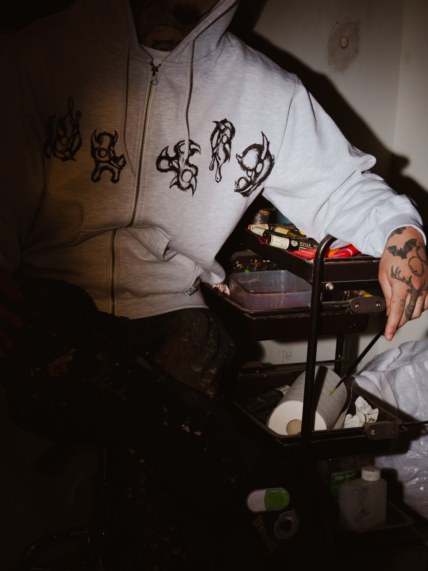 RAYが描く独特の毒っ気が強いキャラクターを使用し、両者の個性を打ち出したプロダクトが販売される。その内容はCarServiceのHWロゴと鬼が融合したドリップロゴのジップフーディー、フルーツオブザルーム別注のリミテッドで鬼のプリントを施したサーマルやバンダナ。