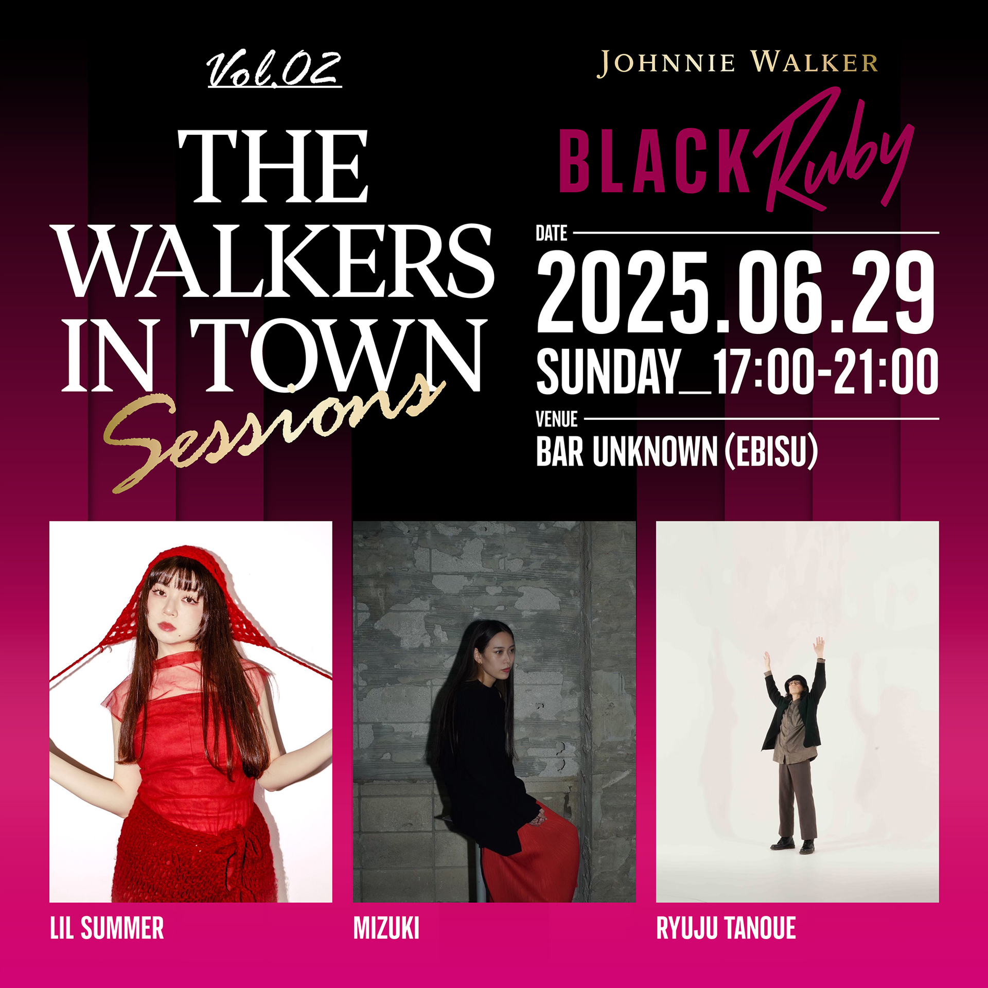 『JOHNNIE WALKER presents THE WALKERS IN TOWN SESSIONS Vol. 2』が 6月29日(日)恵比寿〈unknown〉で開催決定