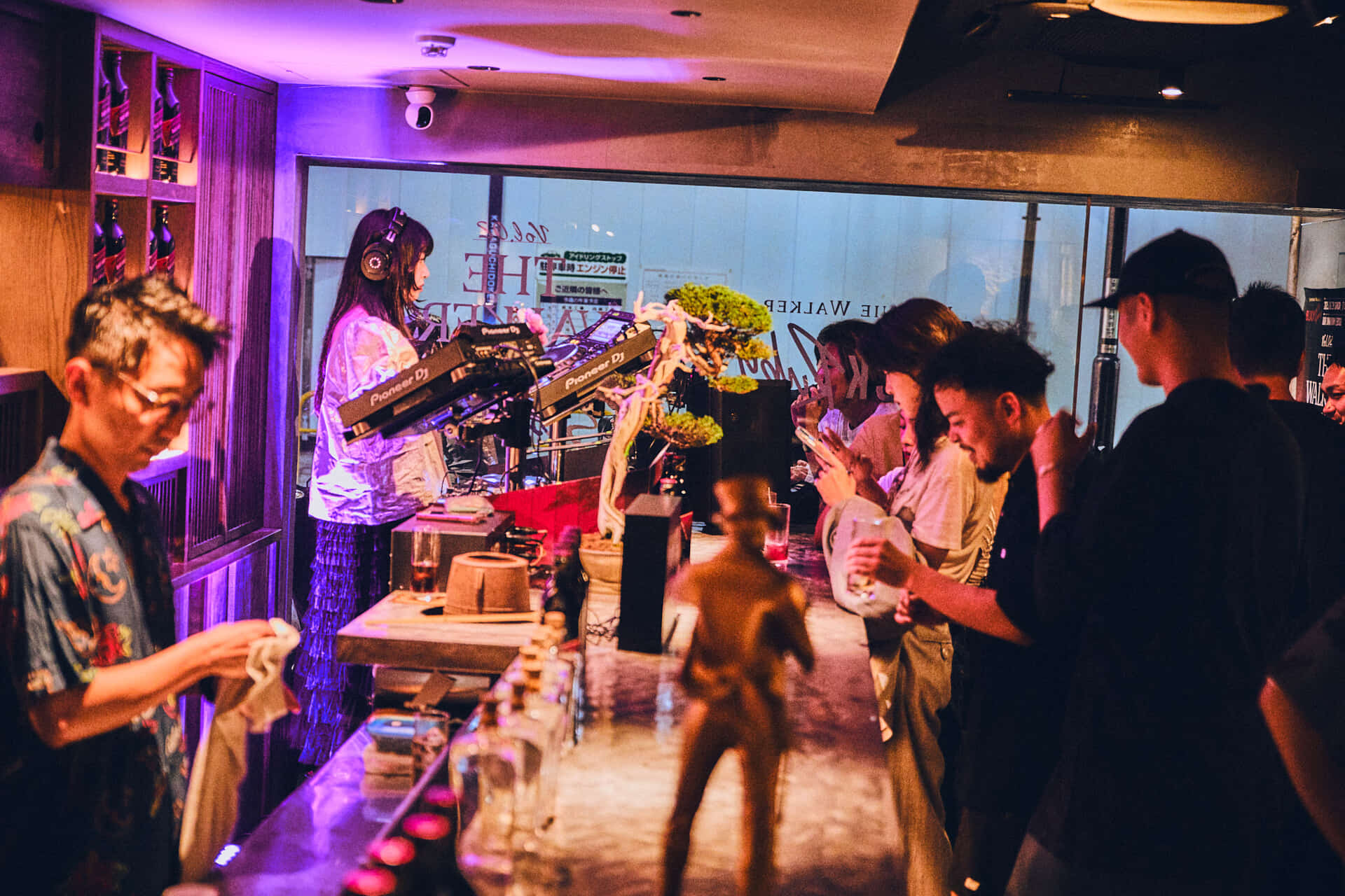 DJブースでは、ジャンルを横断しながら都市のムードを巧みに表現する3名が登場。さらさやVivaOlaらの作品にも関わるDJ/ドラマー・Ryuju Tanoueは、パーカッシブなビートと構築的な音像で空間を引き締め、週末の熱をじわじわと高めていった。続くMizukiは、東京ローカルに根を張りながら多彩な現場で磨かれた感性で、グルーヴィかつ繊細なプレイを展開。Lil Summerは、オルタナティブR&Bやネオソウルを軸に、洗練された音のレイヤーを重ね、夜の始まりに優しく火を灯す。三者三様のプレイで週末の夜を盛り上げた。