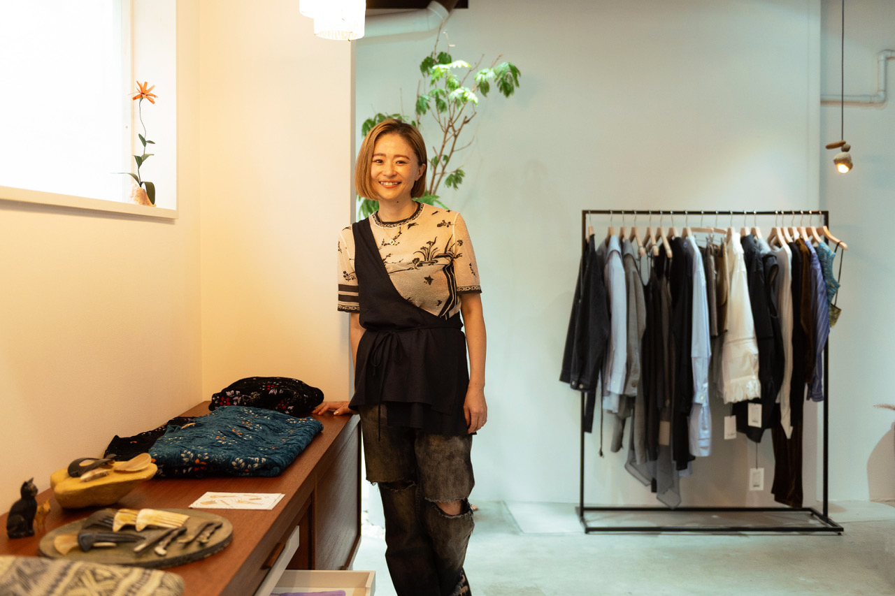 2009年に中崎町でrroommをスタートし、ウィメンズストアとして新たな屋号で独立した植杉さんが営むセレクトショップ。「これまでいろいろな服を見てきたけど、シンプルなデザインだからって長く愛用できるとは限らない。クローゼットに残っているのは、細部まで丁寧に作り込まれたデザイナーの哲学が宿る服。そんな“大切にしたい服”を届けたい」と愛嬌たっぷりに語る。日本のブランドを軸にオリジナルや別注アイテムが並ぶほか、最近は自身のブランド、Ajwainを立ち上げ、インドやネパールの手仕事に今の気分を反映したウエアも展開する。店に足を運ばなくても服が買える時代だからこそ、デザイナーの想いを代弁してもらいながら、一生ものの一着と出会いたい。