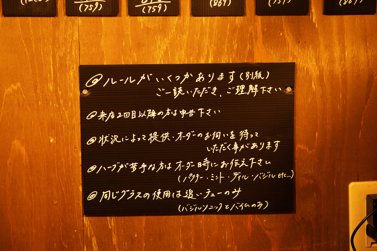 営業時間:15:00–24:00(23:00LO)、ボトルショップ 12:00-19:00 / 休:月曜、月2回不定休
