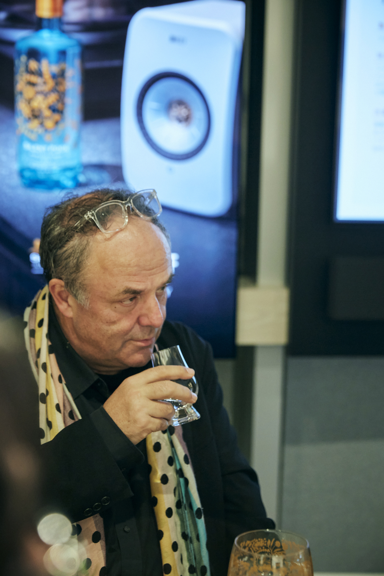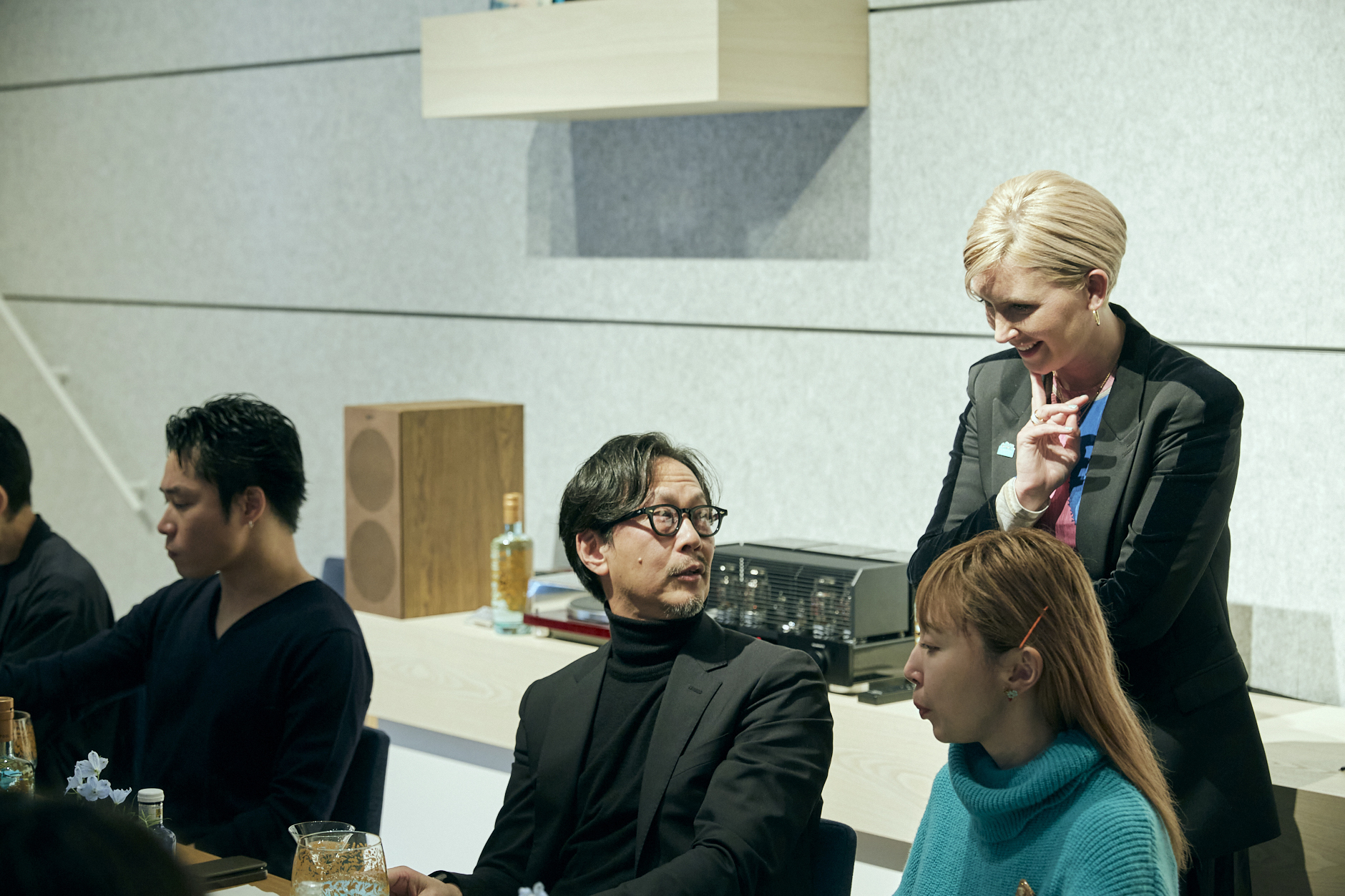 ともにイギリス発祥である両ブランドが、音とジン、そして香りを掛け合わせることで新たな体験へと導くべく開催された本イベント。招待されたのは、第58代横綱・千代の富士の長男であり、現在は千代の富士にまつわるさまざまな企画、運営をメインにファッション業界でもマルチに活動する秋元剛、KEF Music Gallery Tokyoや代官山T-SITE/代官山 蔦屋書店を手掛けた著名な建築家であるマーク・ダイサムをはじめ、イベント内容に相応しいスペシャルな面々だ。