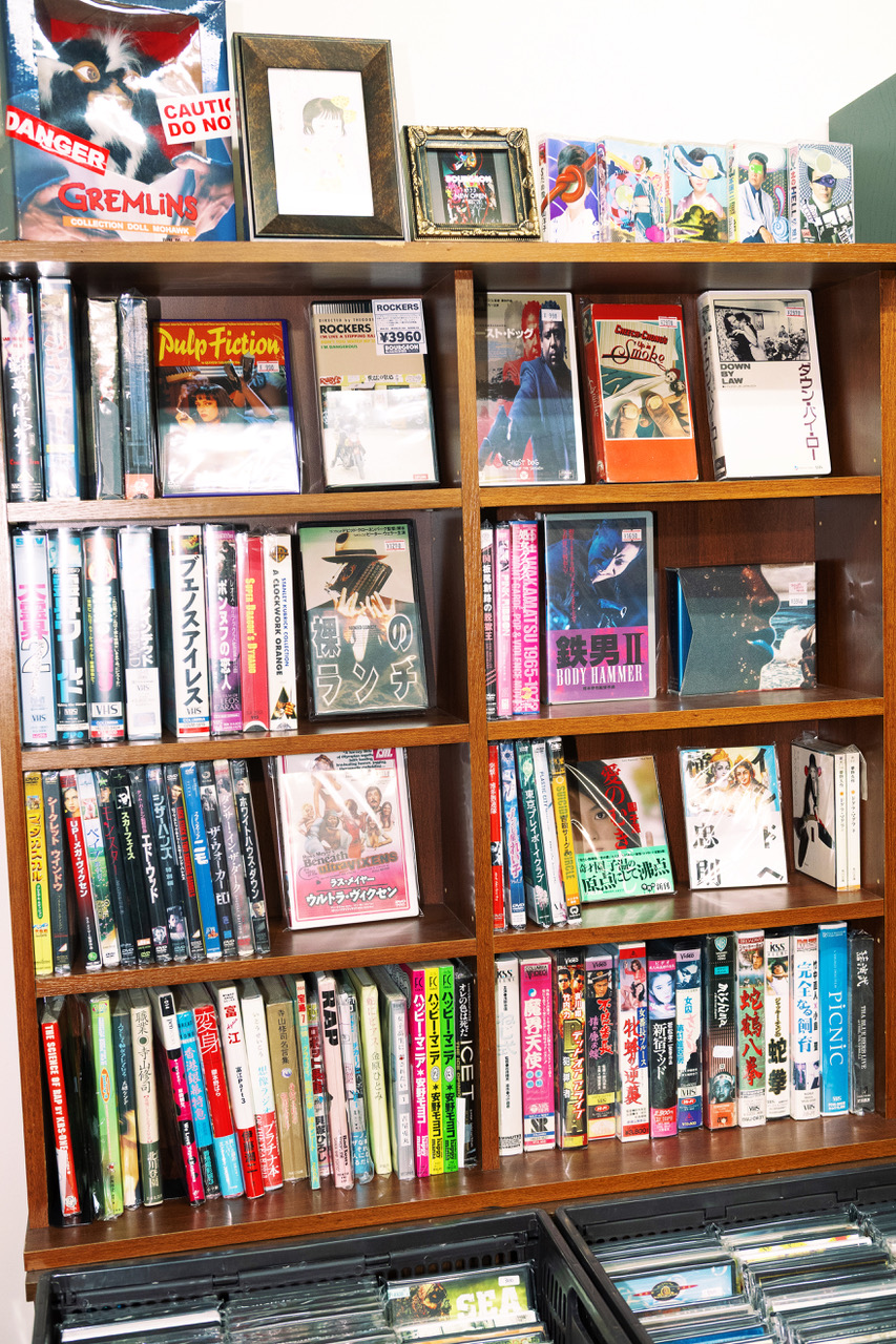 オンラインからスタートし、レコード市の企画も手掛けるM€M€NTOさんが、名だたるレジェンドショップが入居するアメ村の雑居ビル2階に実店舗を開業。大型レコード店のKING KONGで約20年働いた経験を生かし、国内外問わずジャンルレスにラインナップする。「あえて間口を広げることで、サブカルチャーに興味を持つきっかけを作りたくて」とM€M€NTOさん。B級映画をこよなく愛する彼の趣味が色濃く反映された、VHSやDVDのコーナーも見どころだ。併設のギャラリースペースでは、音楽関連のパーティーやポップアップに加え、アートの展示やマニア向けの映画グッズの販売イベントなども開催。夜な夜なサブカル好きが集い、談義に花を咲かせる濃厚な空間へと進化を遂げている。