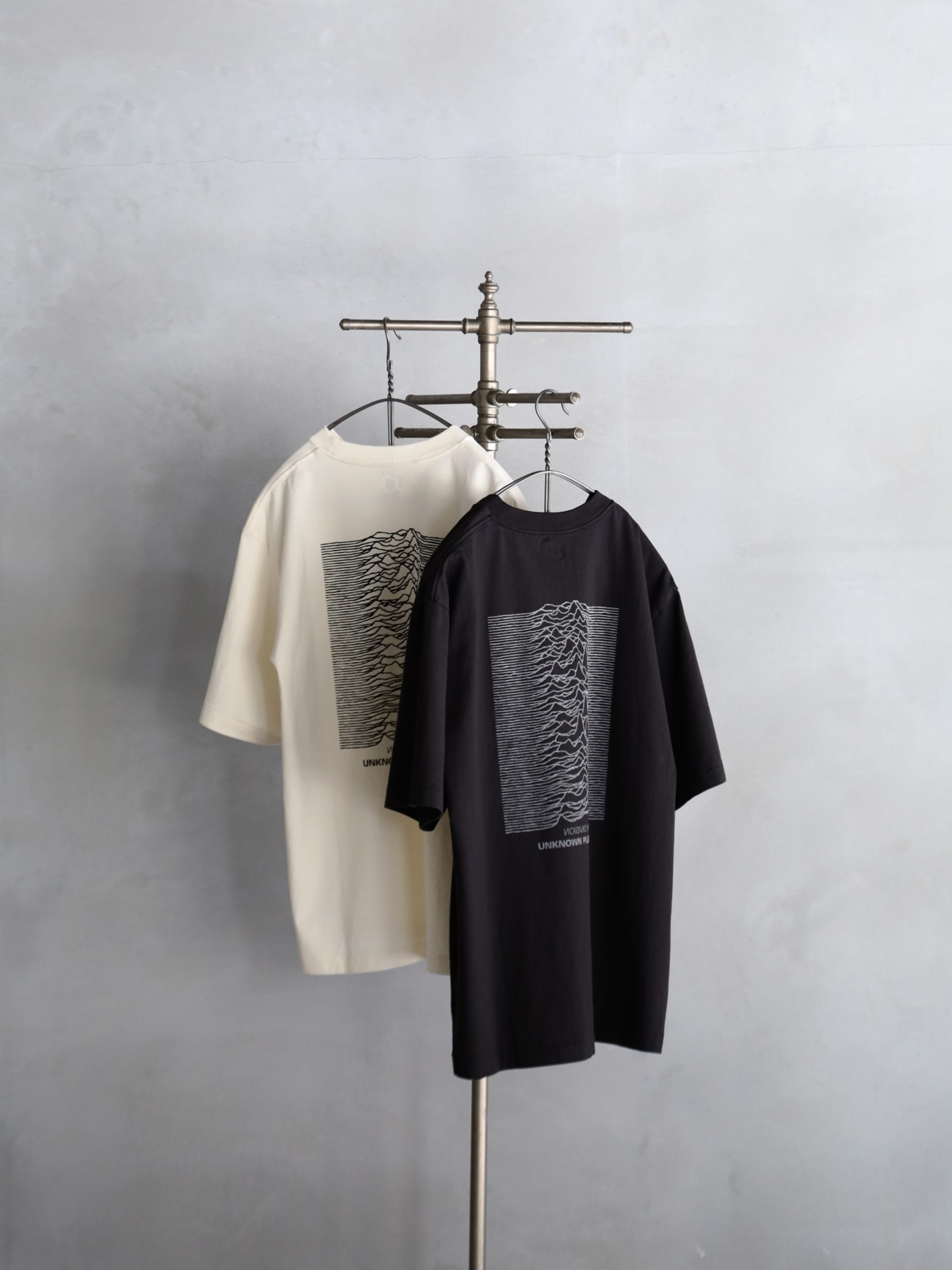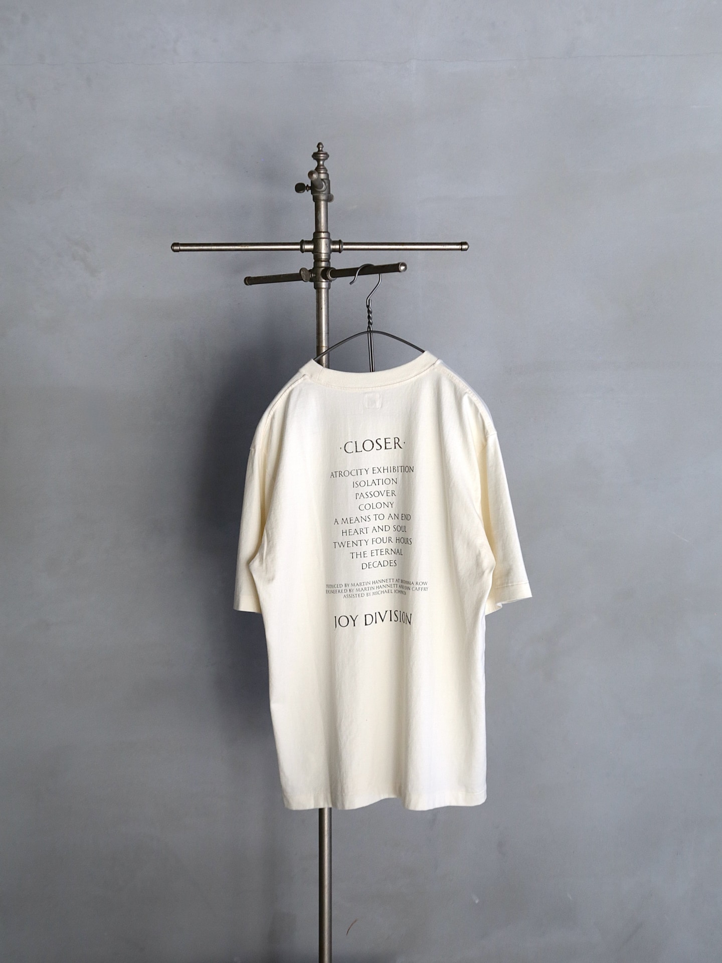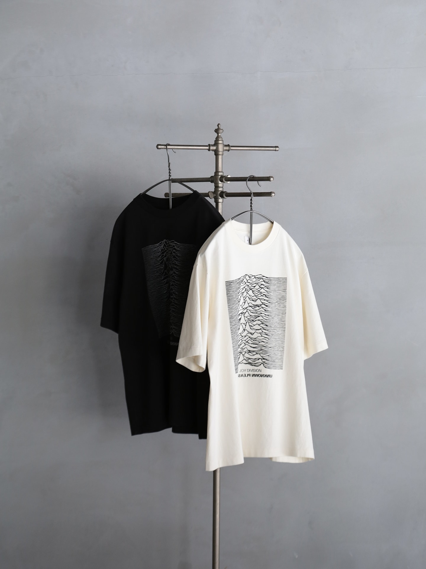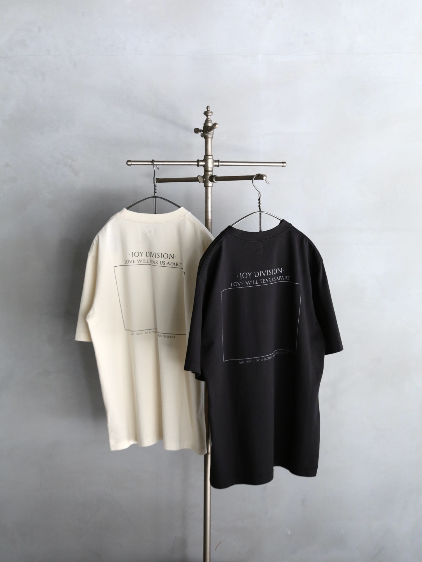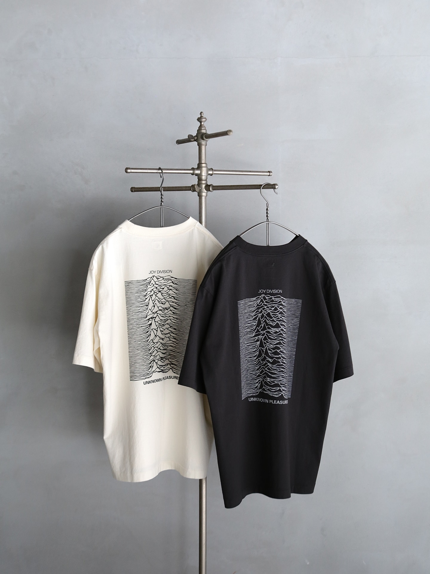 1970年代後半から80年代初頭にかけて活動したJoy Divisionの静けさや余白を内包した独自の表現を、ブランドの文脈で再構築した今作。単にグラフィックを引用するのではなく、Joy Divisionの空気感を表現しながら、日常に馴染むアイテムに仕上げている。