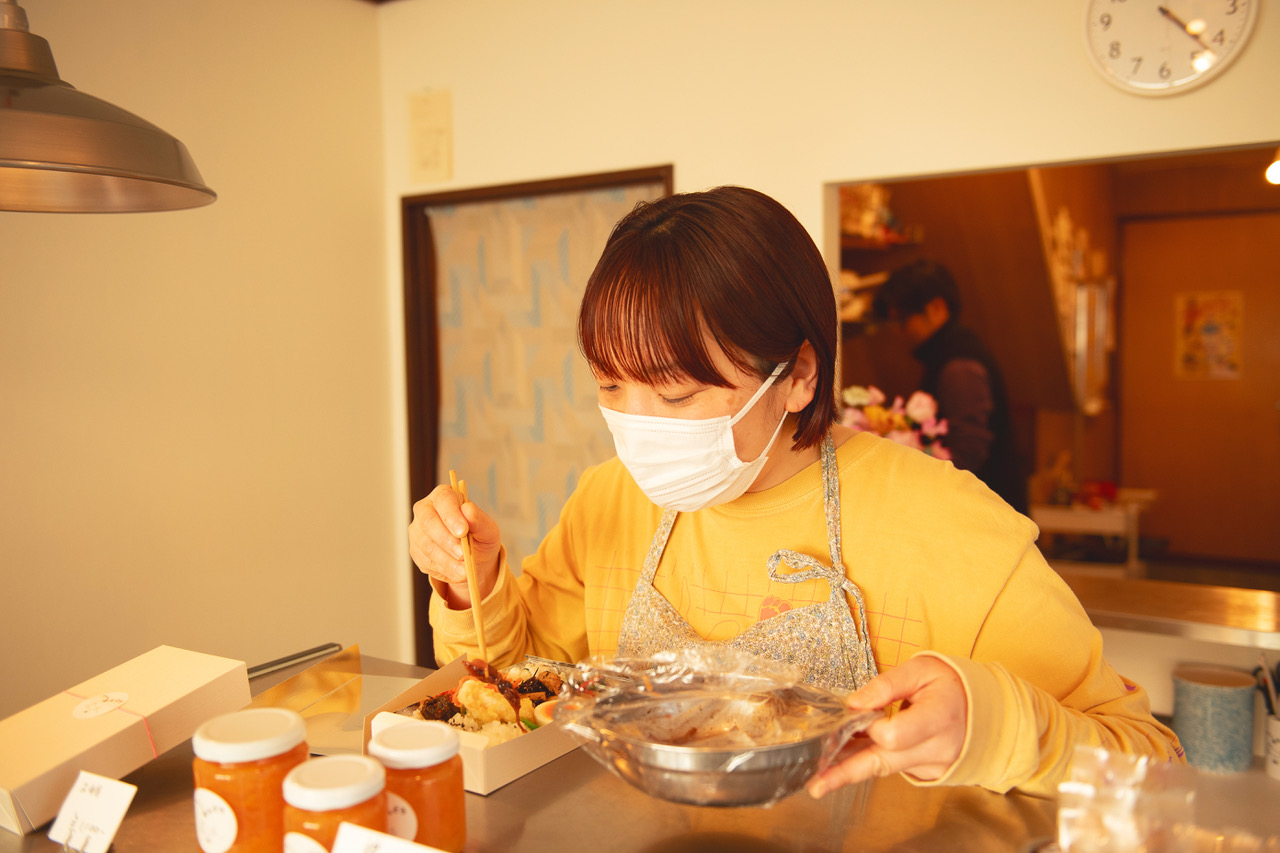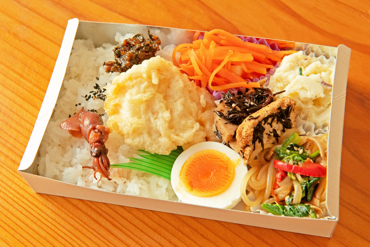 「日替わりのお弁当をよく買いに行きます」と紹介してくれたのは、チャーミングなロゴが印象的なあんどう。店主の安藤恵さんは、自分のご飯をたくさんの人に食べてほしいと念願のお店をスタート。「家庭で作るご飯のように、気持ちよく食べてもらえるものを作りたい」と、季節ごとに産直市場へ足を運んで旬の食材を仕入れるほか、佃煮やしそ味噌といった細やかな品まで手作りにこだわる。ショーケースには、厚揚げの煮物やチェプチェ、ポテサラをはじめとした日替わりの惣菜が並び、夕方頃からは食べ応えのある揚げ物も登場。プリンなどの自家製おやつも人気だ。夕飯の“もう一品”を求めて立ち寄る近所の人も多く、毎日の食卓にさりげない幸せを添えている。