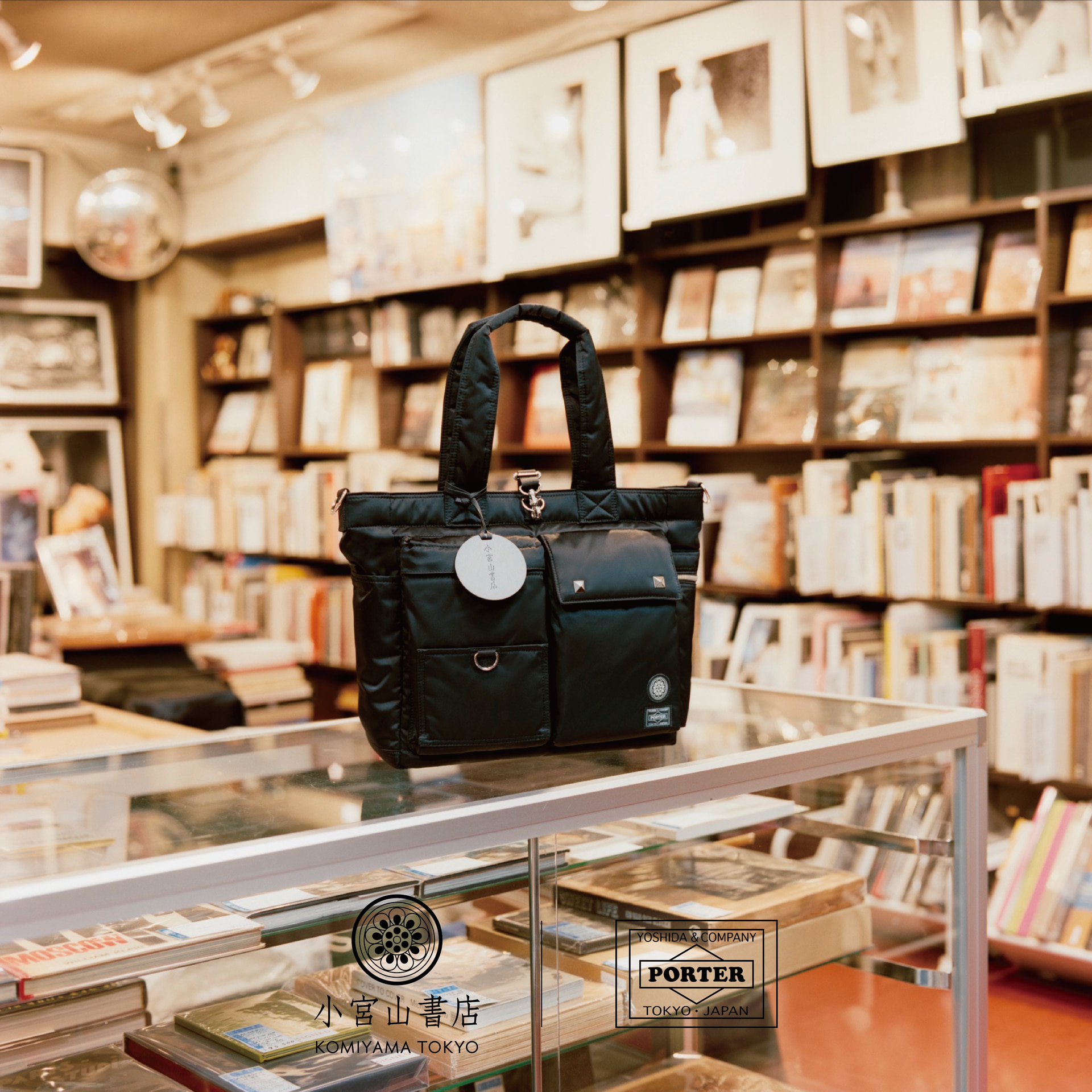 また、今回のイベント開催を記念して「小宮山書店 × PORTER」のコラボレーションアイテムも登場。本を持ち運ぶための機能性にこだわった〈2WAY TOTE BAG〉が、完全数量限定で販売される。A4サイズの書籍や雑誌も収まるサイズ感に加え、ホック+ナスカンの2重構造の開口部、内外合わせて計4つのポケット、長めのハンドル、取り外し可能なショルダーストラップを備えた実用性の高い一品だ。小宮山書店の象徴でもあるマーク入りのキーチャームも付属する。