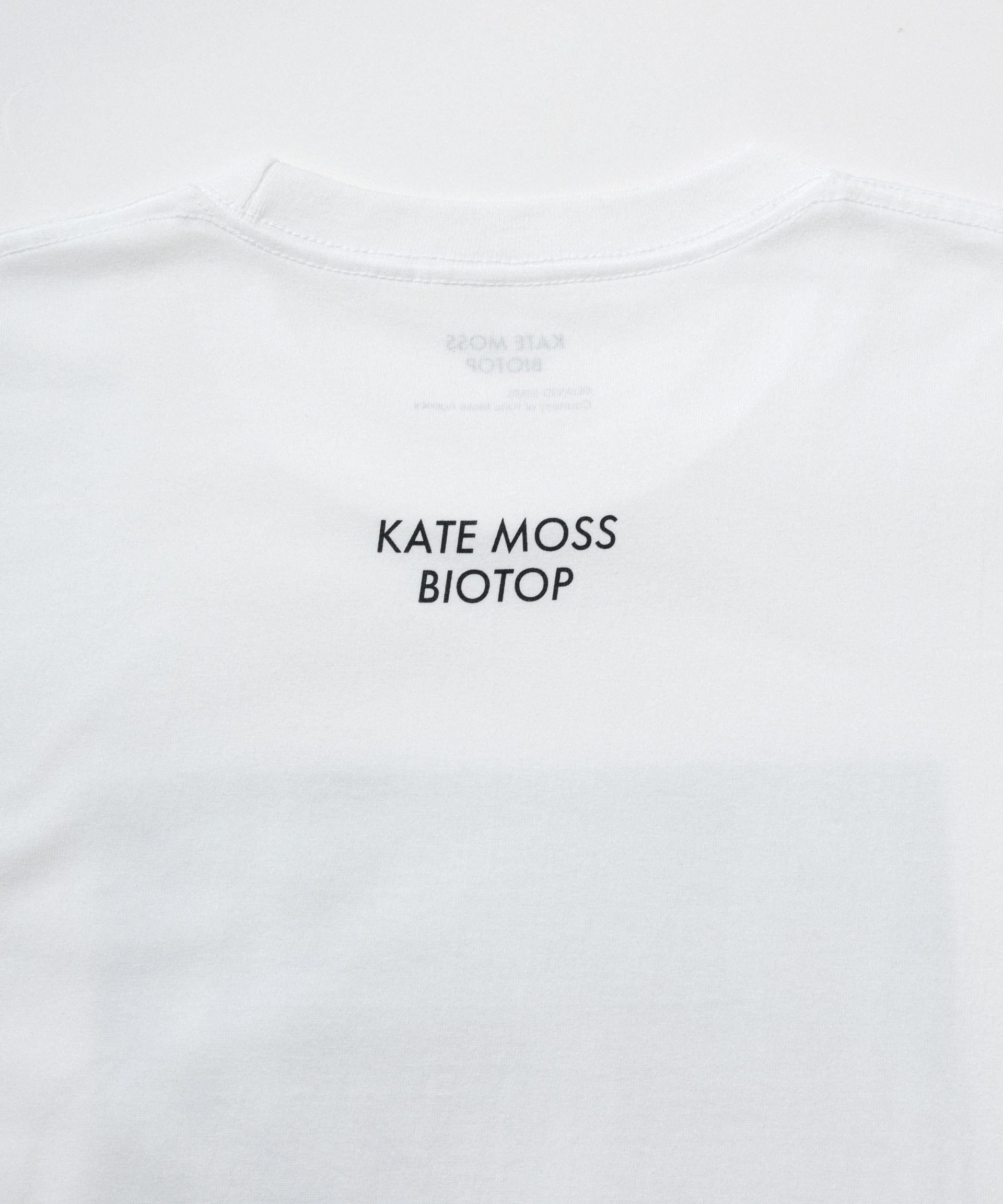 飾らない自然な表情ながら、見るものを惹きつけるケイト・モスが魅力的な一枚で、背面にはKATE MOSSとBIOTOPのロゴがプリントされている。カラーはベーシックな黒と白の2色。8月1日(金)の発売に先立ち、BIOTOP ONLINEにて予約受付中なので、お見逃しなく。