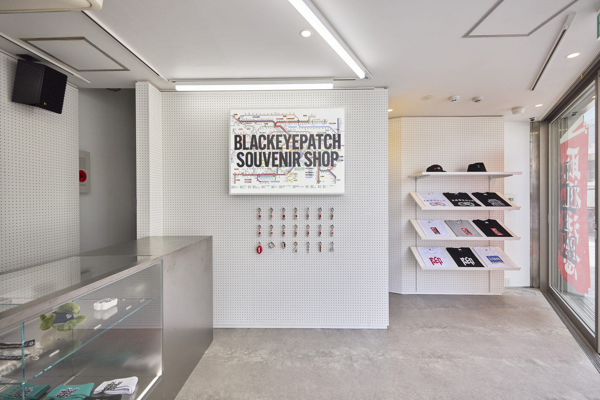 一方で、地下にはブランド名のグラフィティがブロックバスタのスタイルで大きく描かれており、「BlackEyePatch」のルーツが垣間見える装飾に。