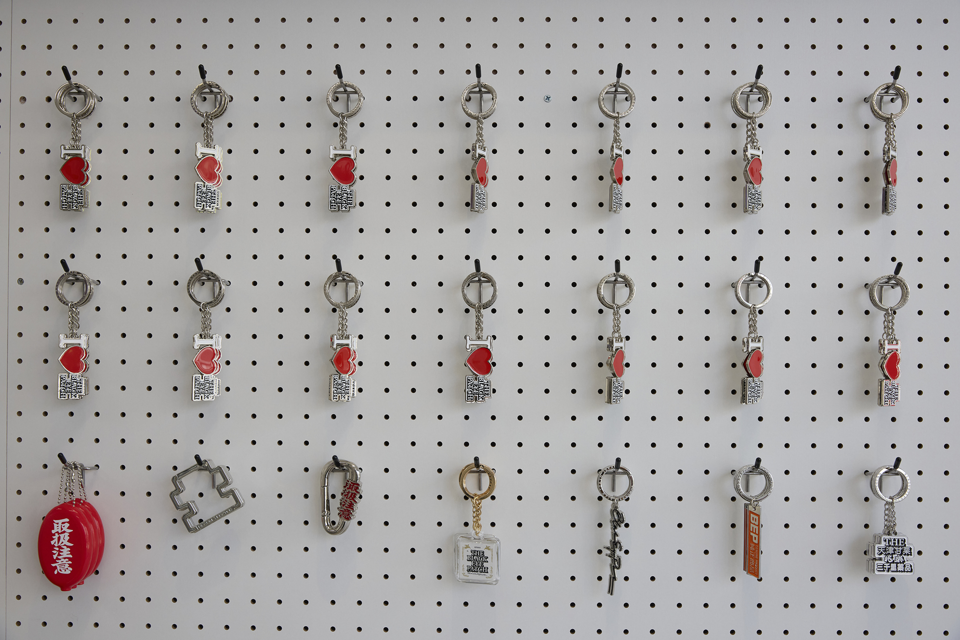 ショップの内装も今回のコンセプトに準じたものになっており、1階の壁は白い有孔ボードに覆われた作りになっている。