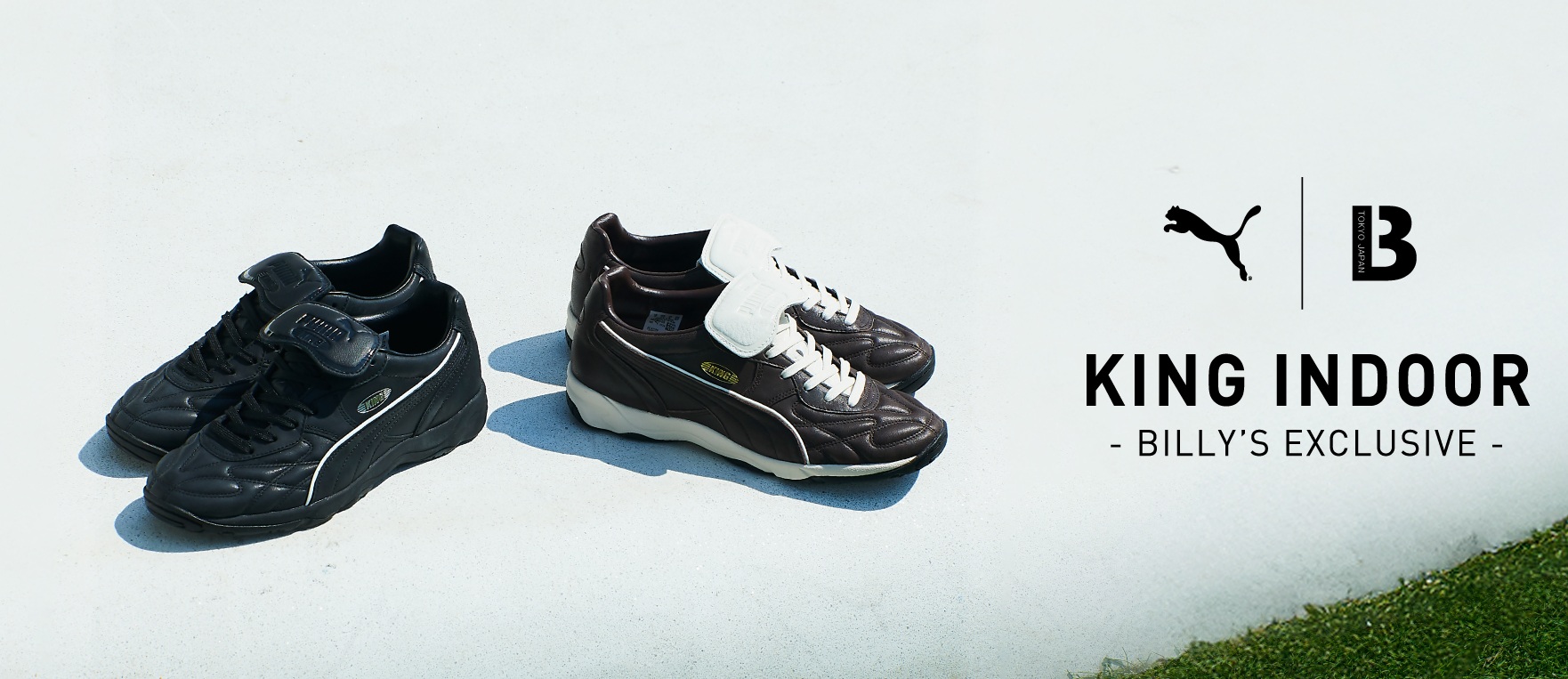 スニーカーセレクトショップ BILLY‘S ENTが、PUMAのKING INDOORの限定カラーを発売する。KING INDOORは、PUMAの名作スパイクKINGをベースにインドア仕様へと進化させたモデル。上質なレザーアッパーに、立体的なステッチワーク、フラップタンとスパイクらしいデザインや、ちょっとレトロシックなムードが魅力だ。