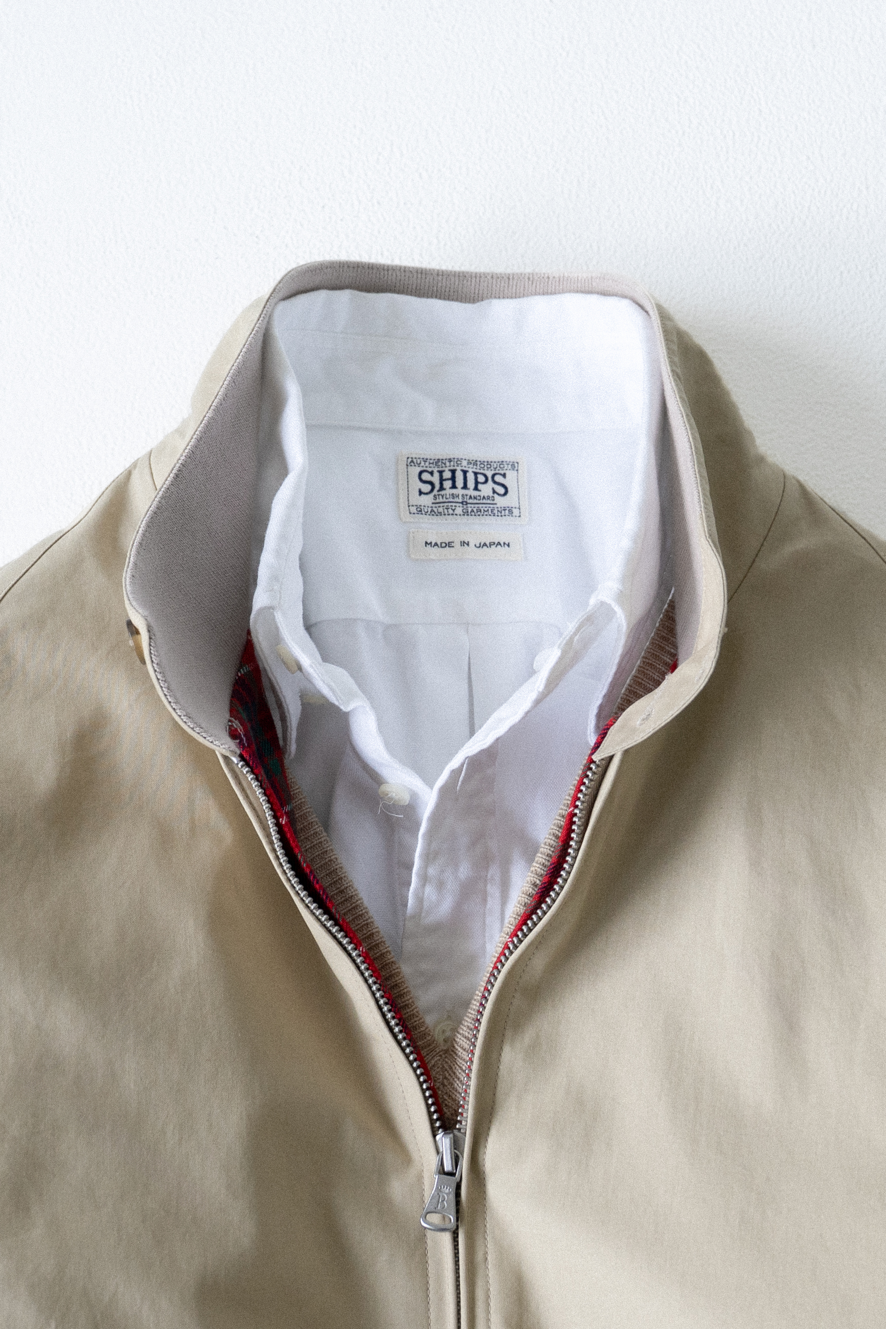 最後に紹介するのは、イギリス・マンチェスター発BARACUTAの「G9」だ。今回の別注では、60~70年代に展開されていたクラシックG9を希少なイギリス製で再構築している。フレーザータータンの裏地や、襟に取り付けられた“MADE IN ENGLAND”タグなど、細部まで当時のモデルを再現。