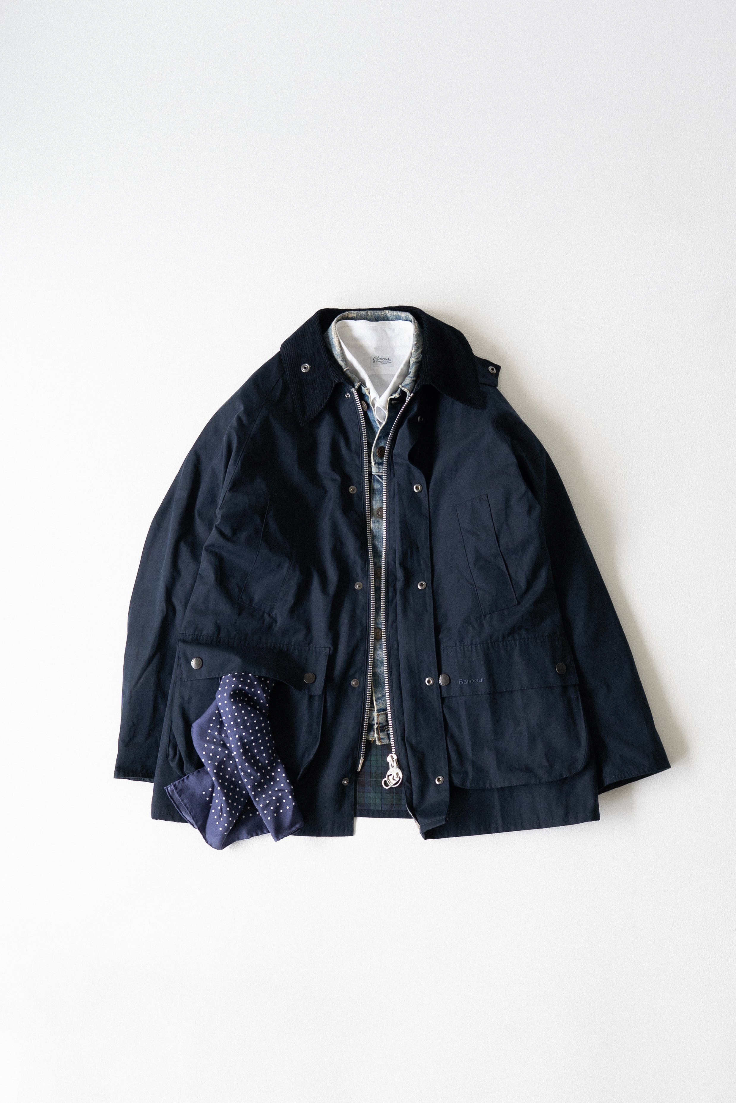 Barbourからは、「OS BEDALE」をベースにしたアウターが登場。前身頃の裏地は通常のBarbourのハウスチェックを、後ろ身頃の裏地にはSHIPSタータンを配したクレイジーパターンで組み合わせた、50周年だからこそのスペシャルなモデルだ。ジップをシルバーに変更し、洗練された印象に仕上げている。