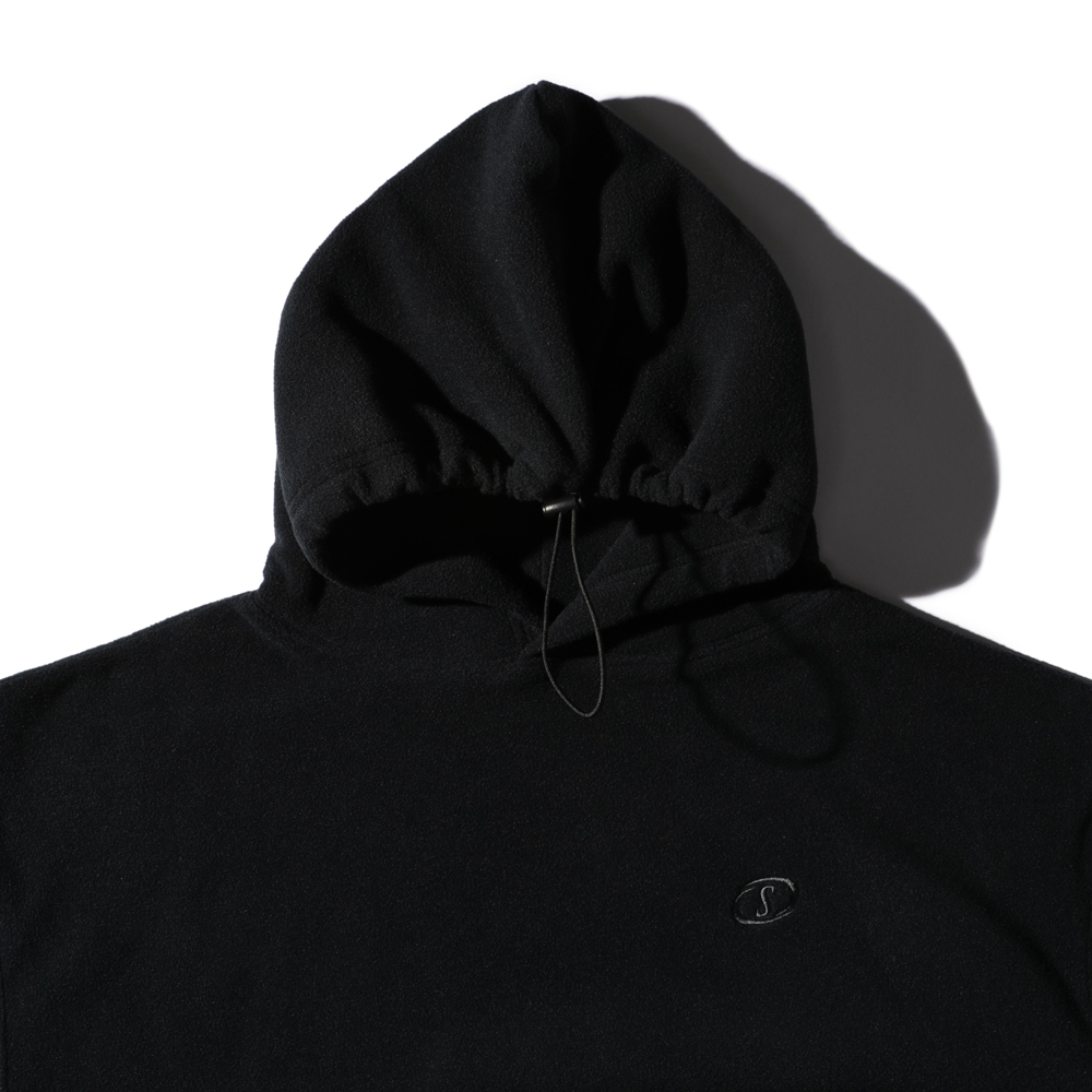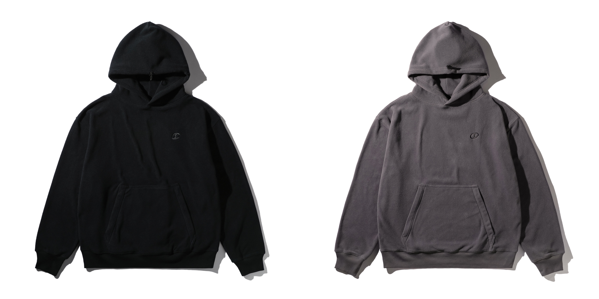 フーディーは、スピンドルゴムでフードのフィット感を調整でき、フロントポケットには小物が落ちないようファスナーを取り付けるなど、ディテールまでこだわることで使い勝手を格段にアップさせている。左胸のSロゴがシンプルなデザインのアクセントに。