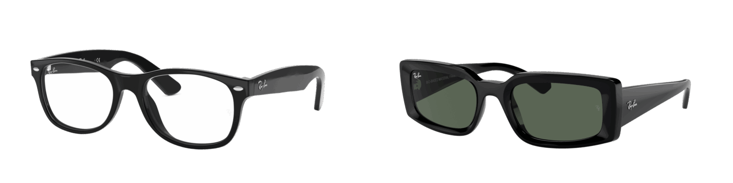 U-LEE着用モデル(左)0RX5184F 2000 (ブラック) New Wayfarer ¥27,280(右)0RB4395F 667771 (ブラック/ダークグリーン) Kiliane ¥27,060