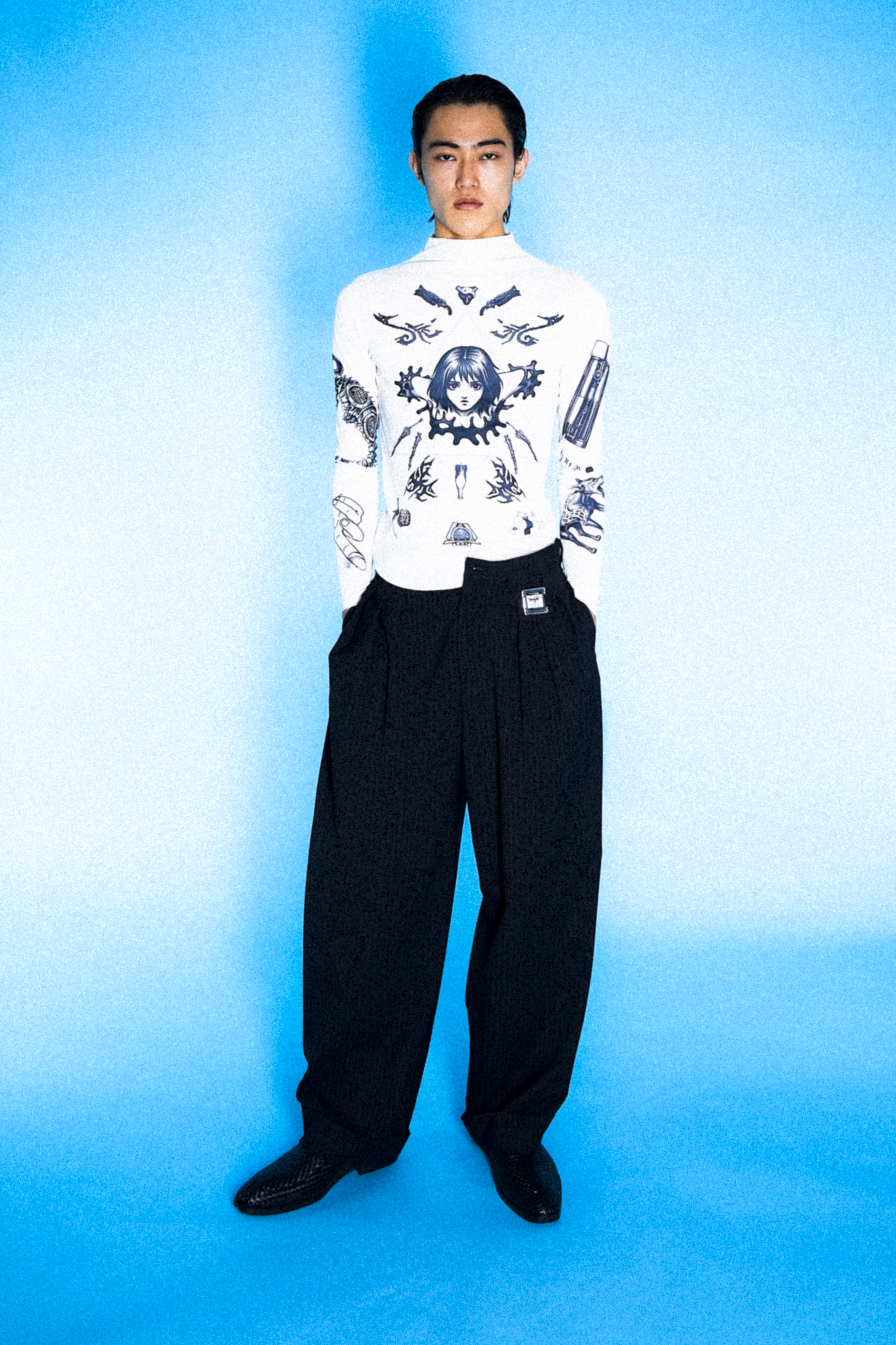 本コレクションは、「GAME CULTURE Ver.1.0.0」がテーマ。デザイナーである国分寺が幼少期だった2000年〜2010年頃に登場していた日本のゲーム文化が起点となっており、時代ごとに変化し、展開していく日本独自のゲーム文化の構造や熱量を、LITTLE BEDROOMのフィルターを通し表現している。