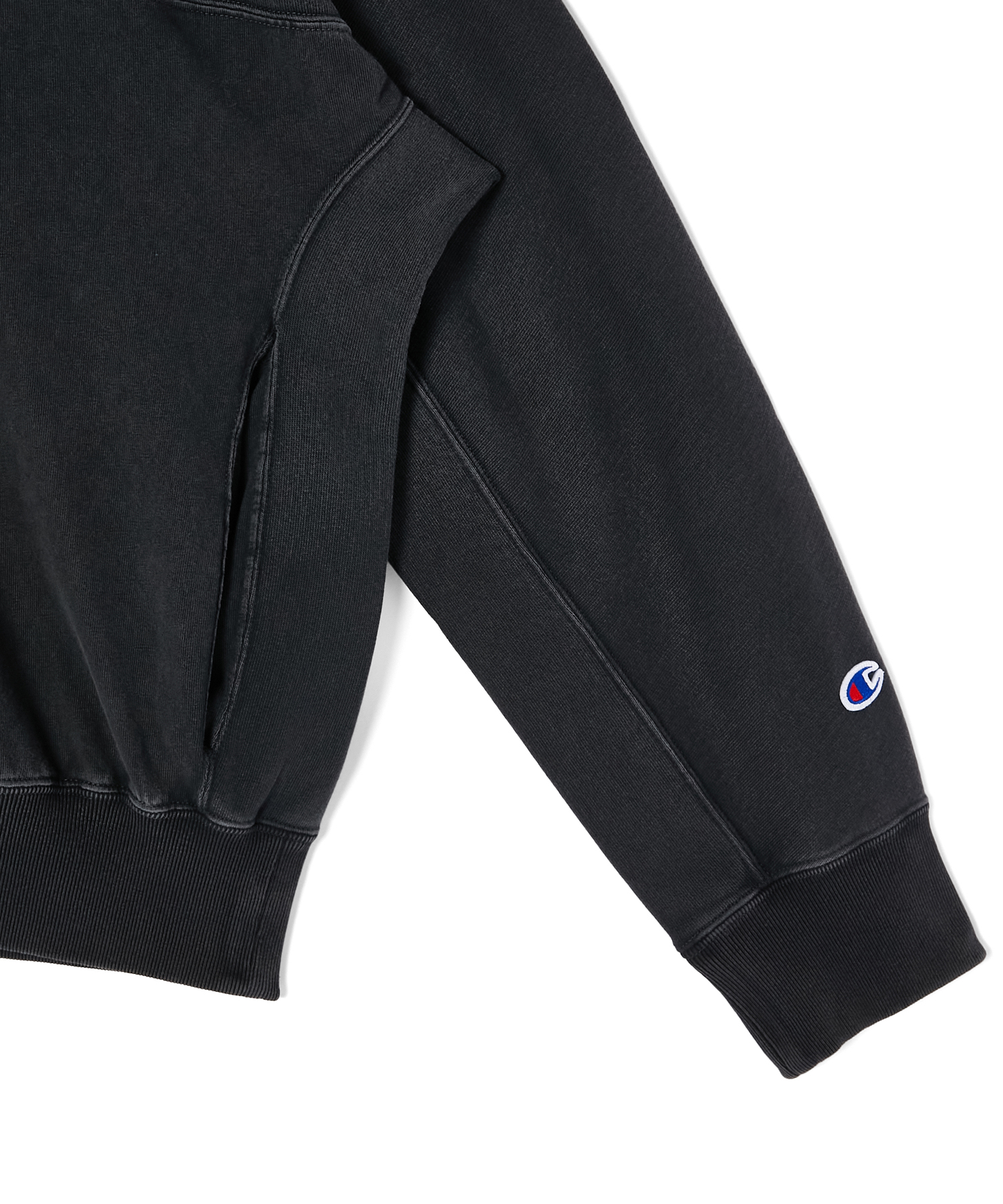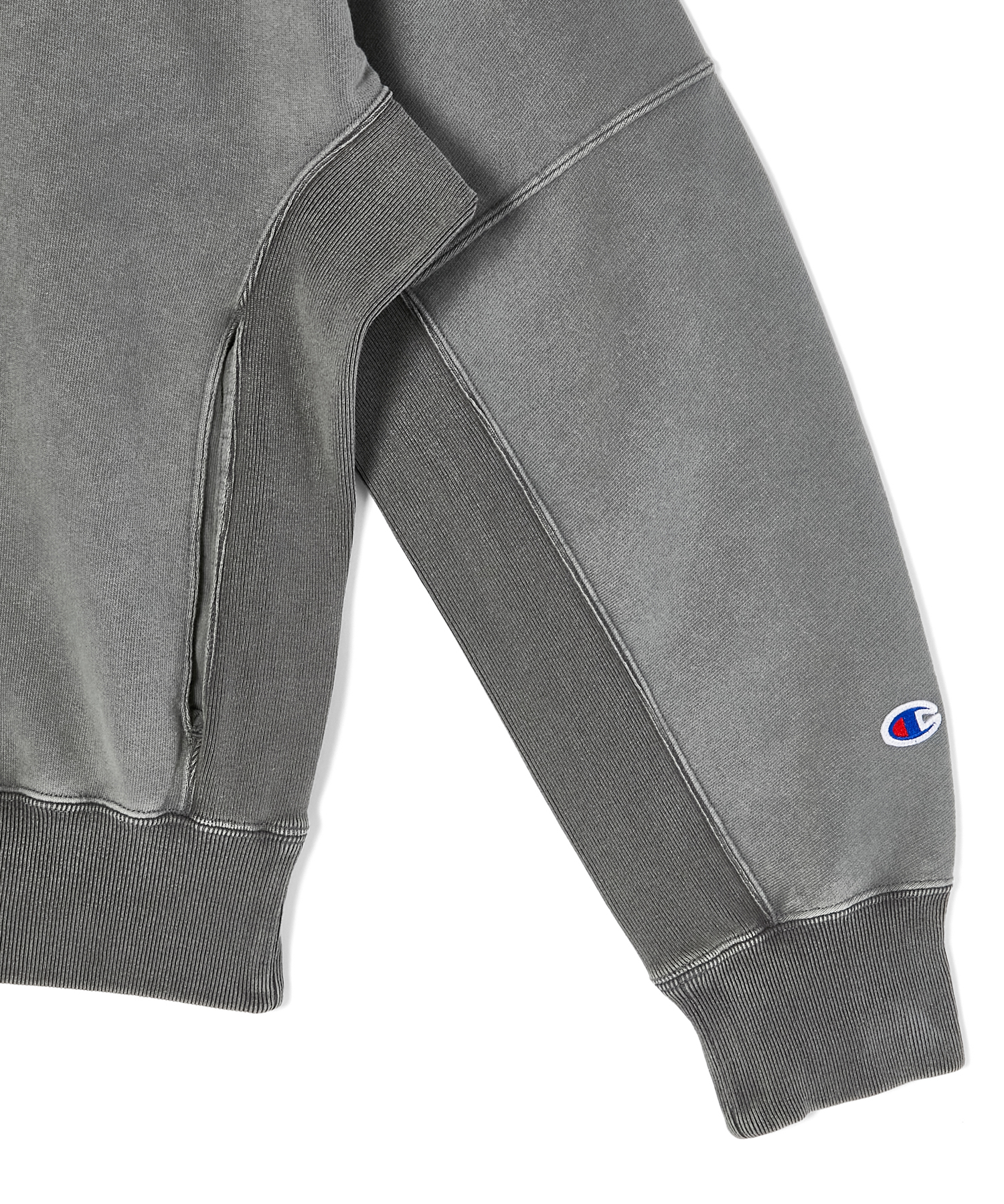 ChampionとN.HOOLYWOODが共同製作した裏起毛素材と、Champion定番の肌触りの良いコットン100%の天竺素材を使用したスウェットプルオーバー、ジップスウェット、そしてフード付きスリーブレススウェット。片面は無地、もう一面は切り替えデザインのリバーシブル仕様になっている。いずれもネックにはCロゴを刺繍。長袖の2モデルは左袖にCロゴワッペン、背面ネックにはN.HOOLYWOODとChampionのロゴを組み合わせた専用タグを配置、ノースリーブスウェットは背面にCロゴワッペンを、ポケット裏に専用タグを配置した。