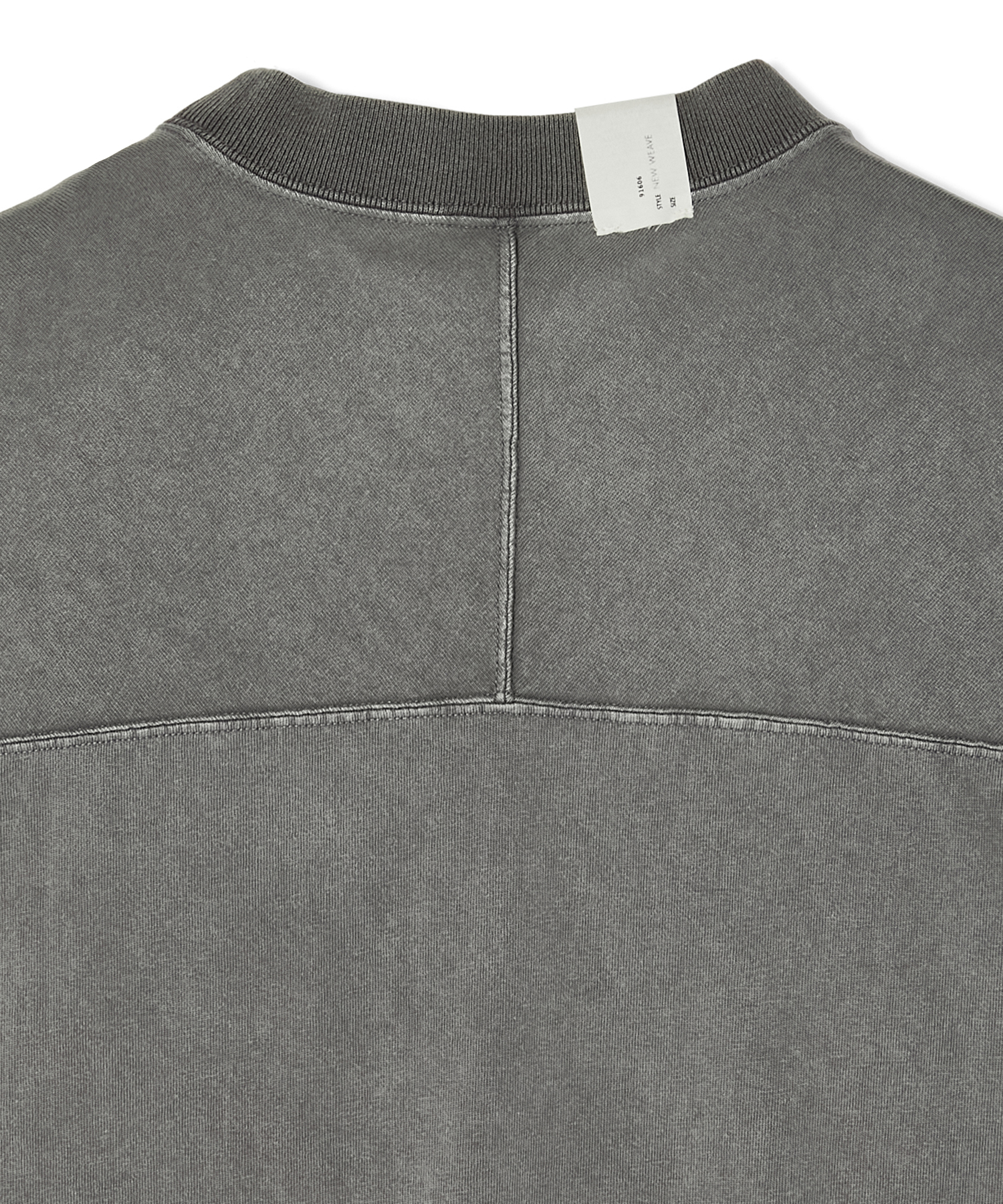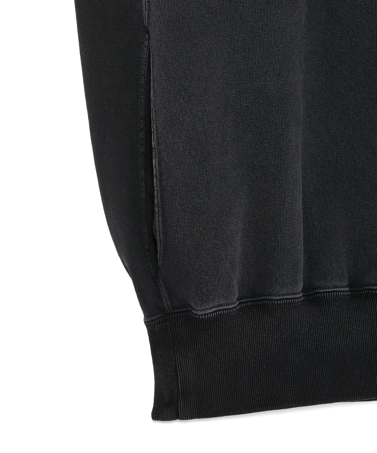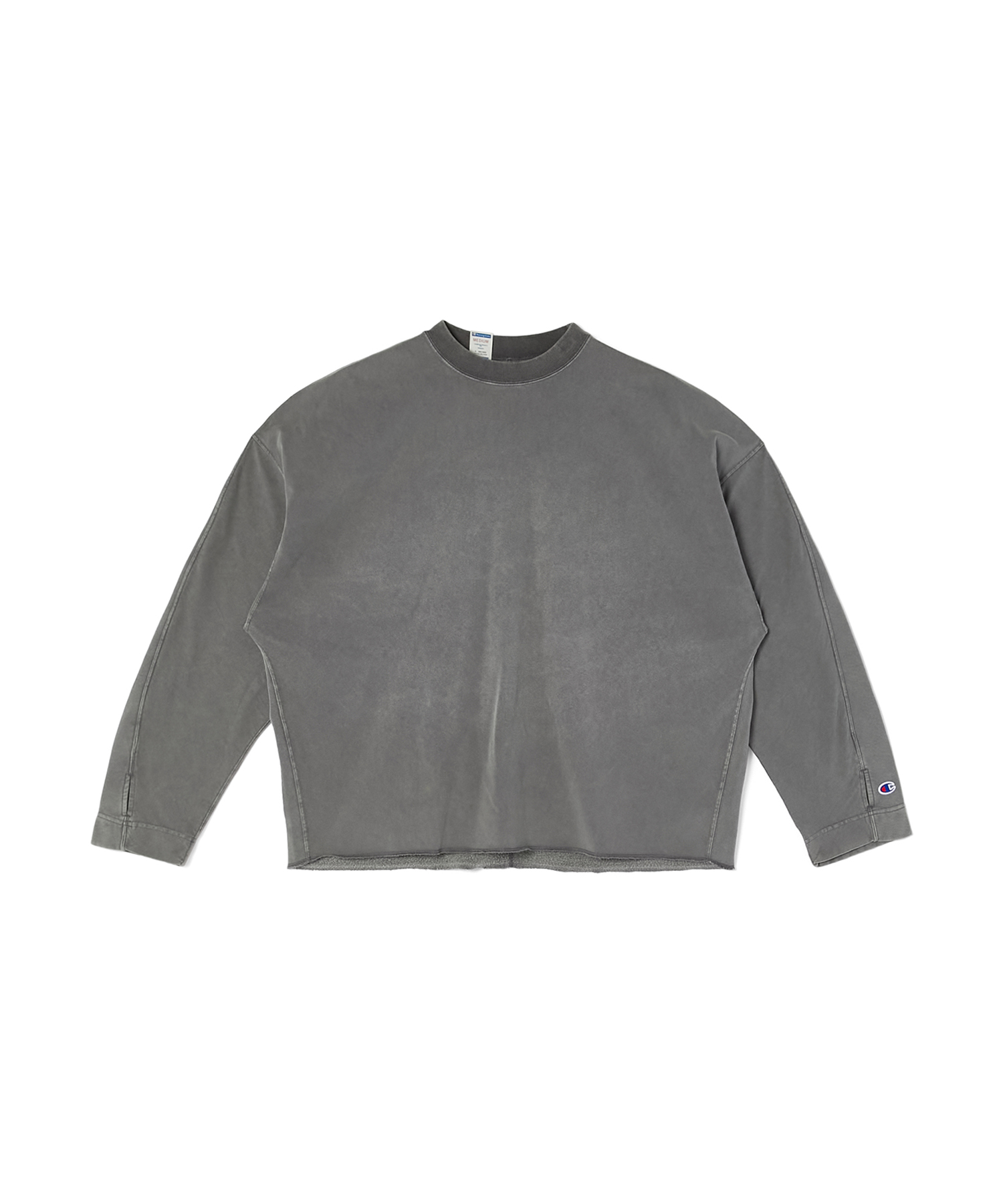 ロンTは身幅を広くとったボックスシルエットや、裾にリブを用いないことでリラックスした印象に。ガーメントダイ加工で、ヴィンテージライクな表現を演出している。