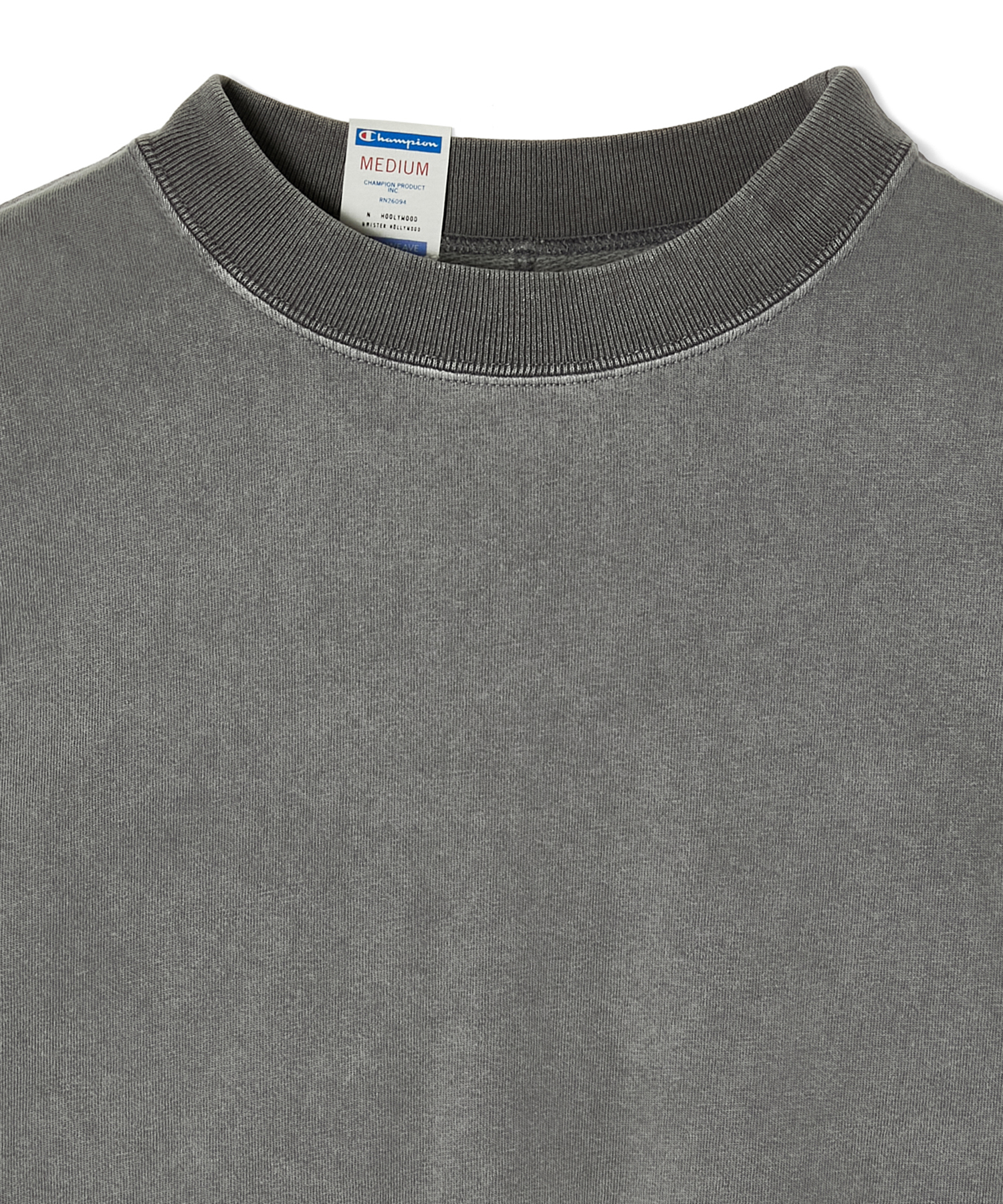 こちらはChampion定番の天竺素材を使用したショートスリーブシャツ。立体裁断により体に沿うシルエットで組み上げ、裾はロックミシンで仕上げた。
