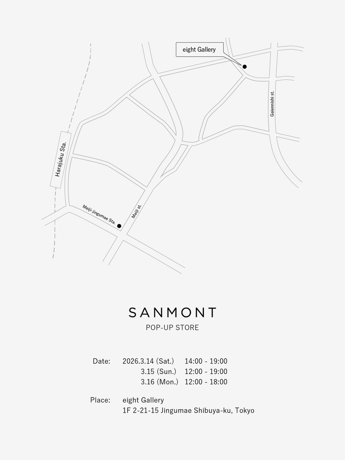 モノづくりに携わってきたクリエイターユニットによるファッションアウトドアブランドSANMONTが、POP-UP STOREを開催。3月14日から16日までの3日間、東京・神宮前のeight Galleryにて行われる。