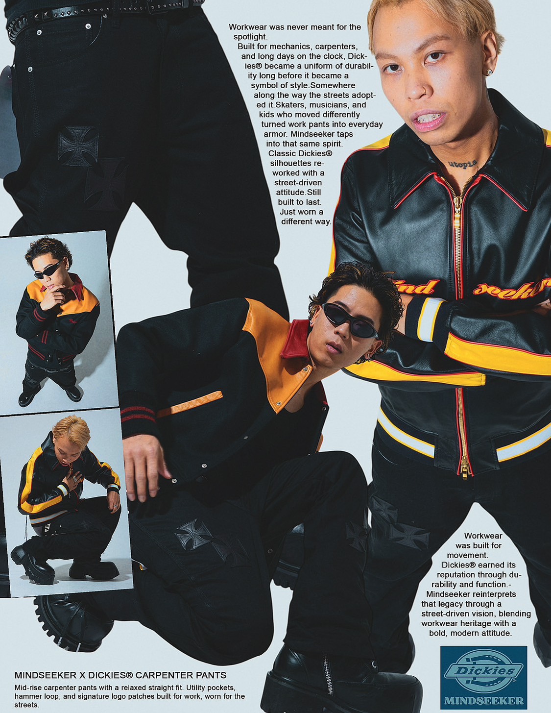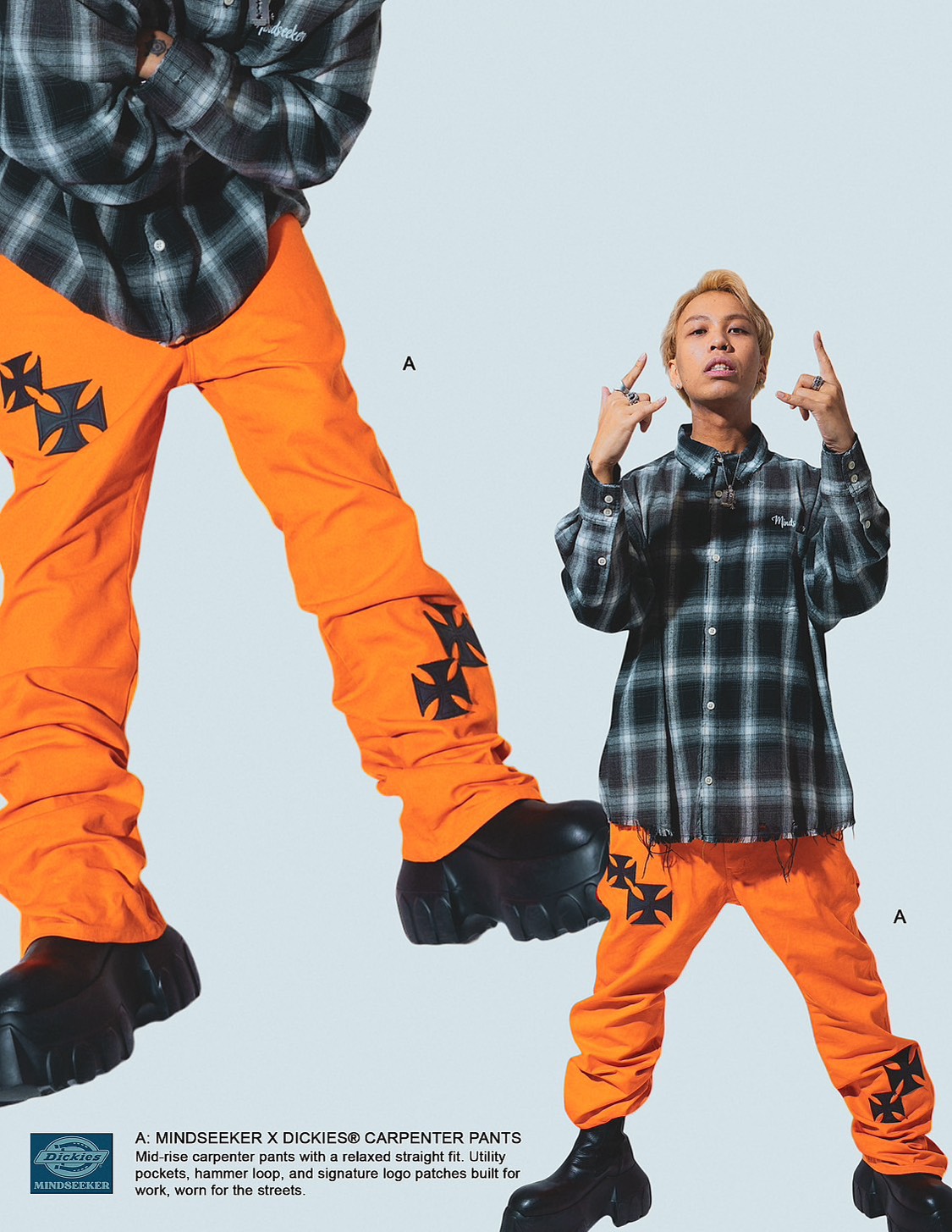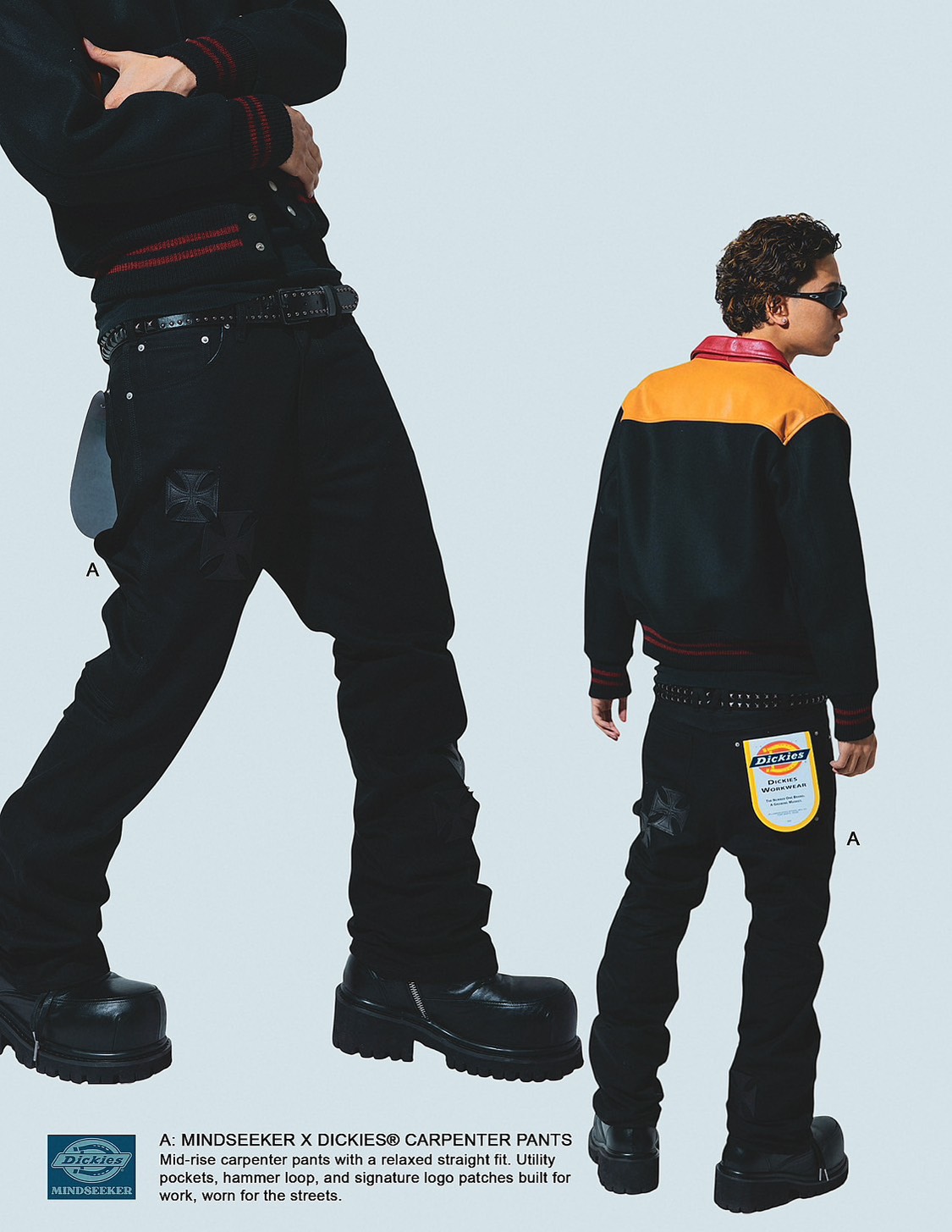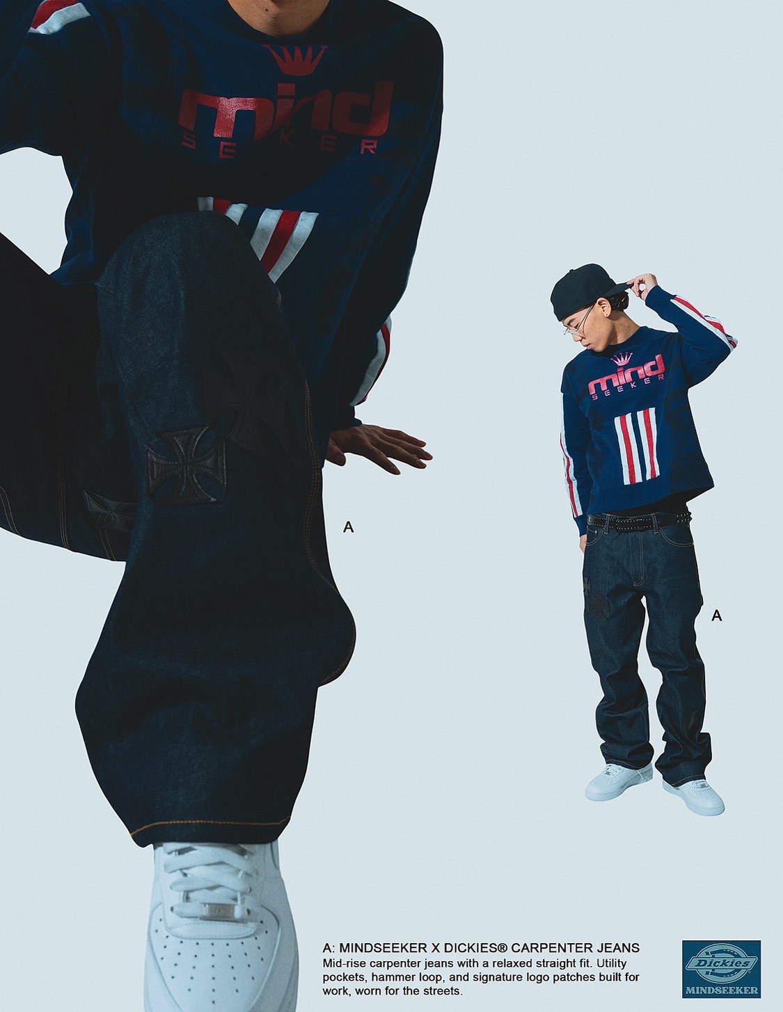 mindseekerDickies®による最新コラボレーションパンツが登場。3⽉28⽇(⼟)より、全国の取扱店舗および公式オンラインストアにて発売される。