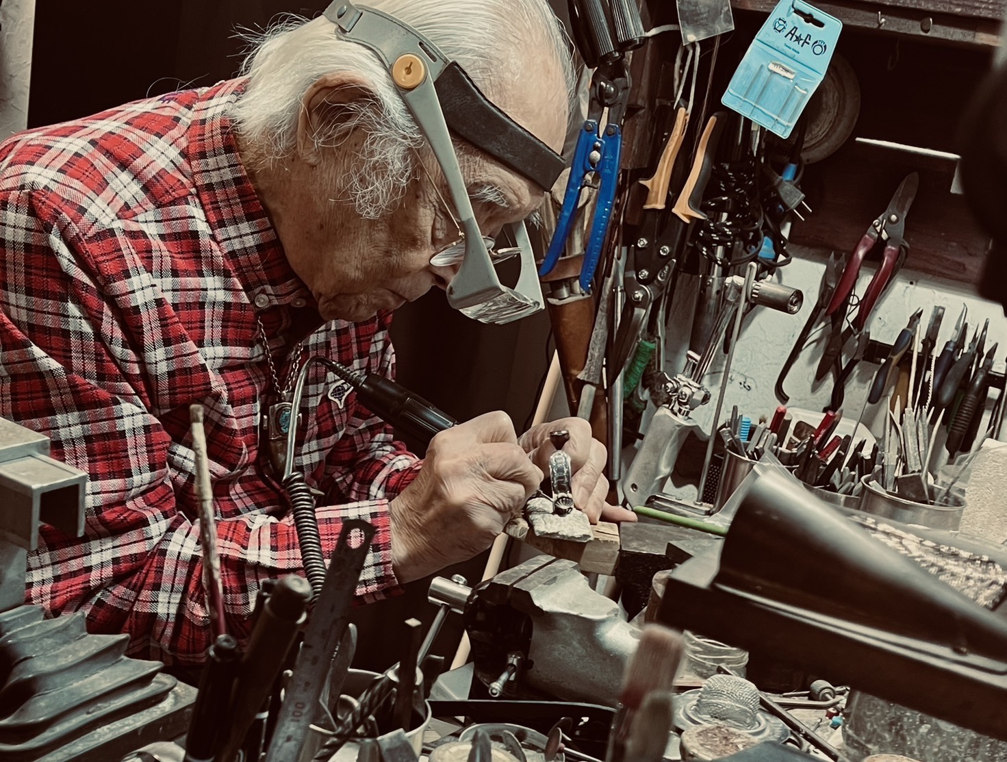「頭に描いたデザインがシルバーから生まれる瞬間が一番楽しい。刻印を打ちながら、パワーを込めて作品を作っています。今後も一つでも多くの作品を残していきたいですね」と語る。