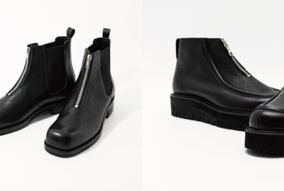 全6型で展開する今回のコレクションは、ブーツを筆頭に、ナイロンジャケット、Tシャツ、デニムパンツのウエア類、キャップにレザーベルトの小物もラインナップする。
