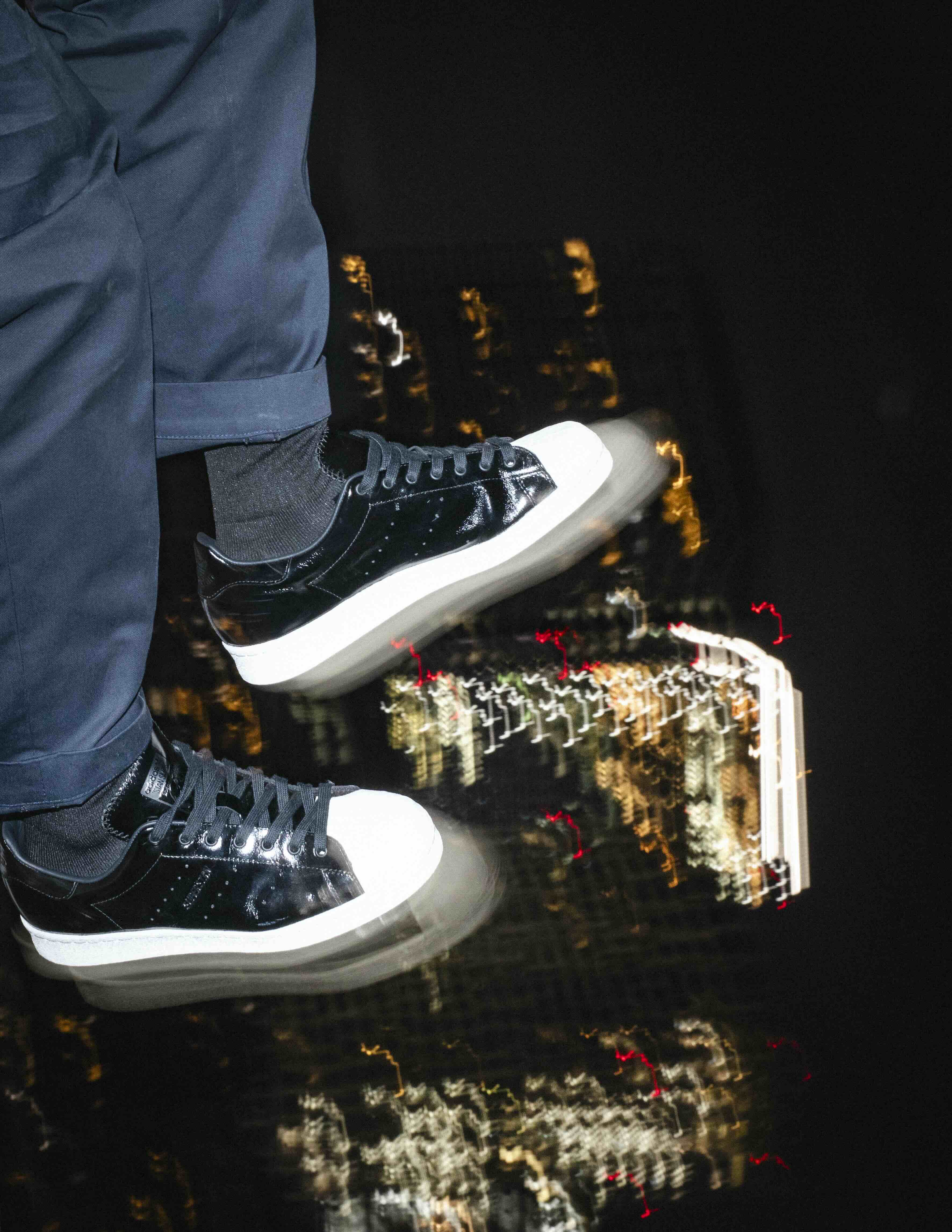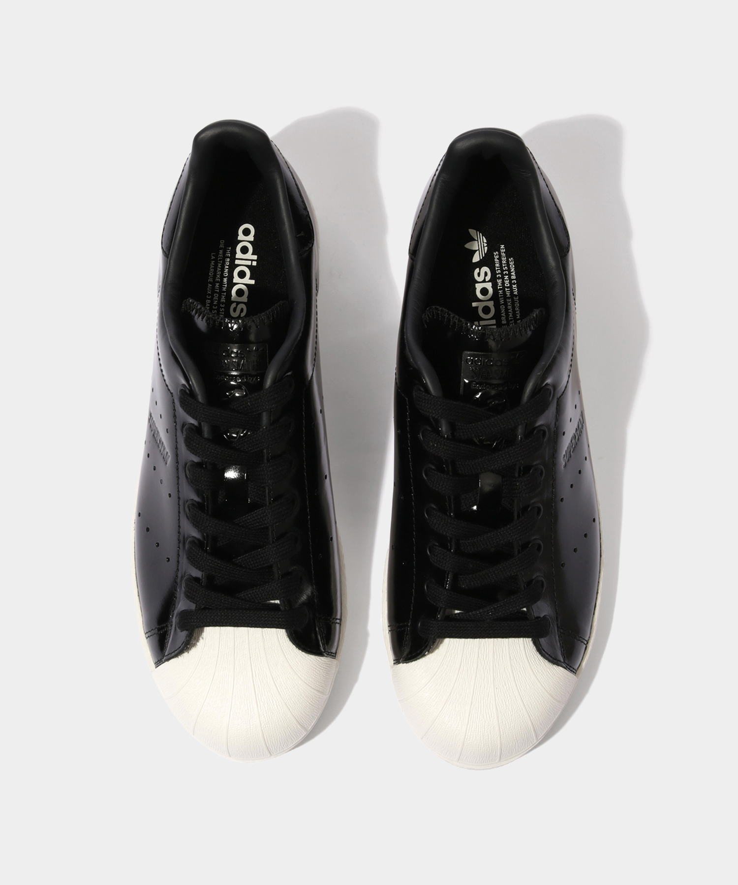 カラーは、80年代の「SUPERSTAR」を想起させるオフホワイトのソールにブラックアッパーを組み合わせた配色。光沢感のあるパテント素材を採用することで、クラシックなルーツにモダンなエッセンスを加えた一足に仕上がっている。