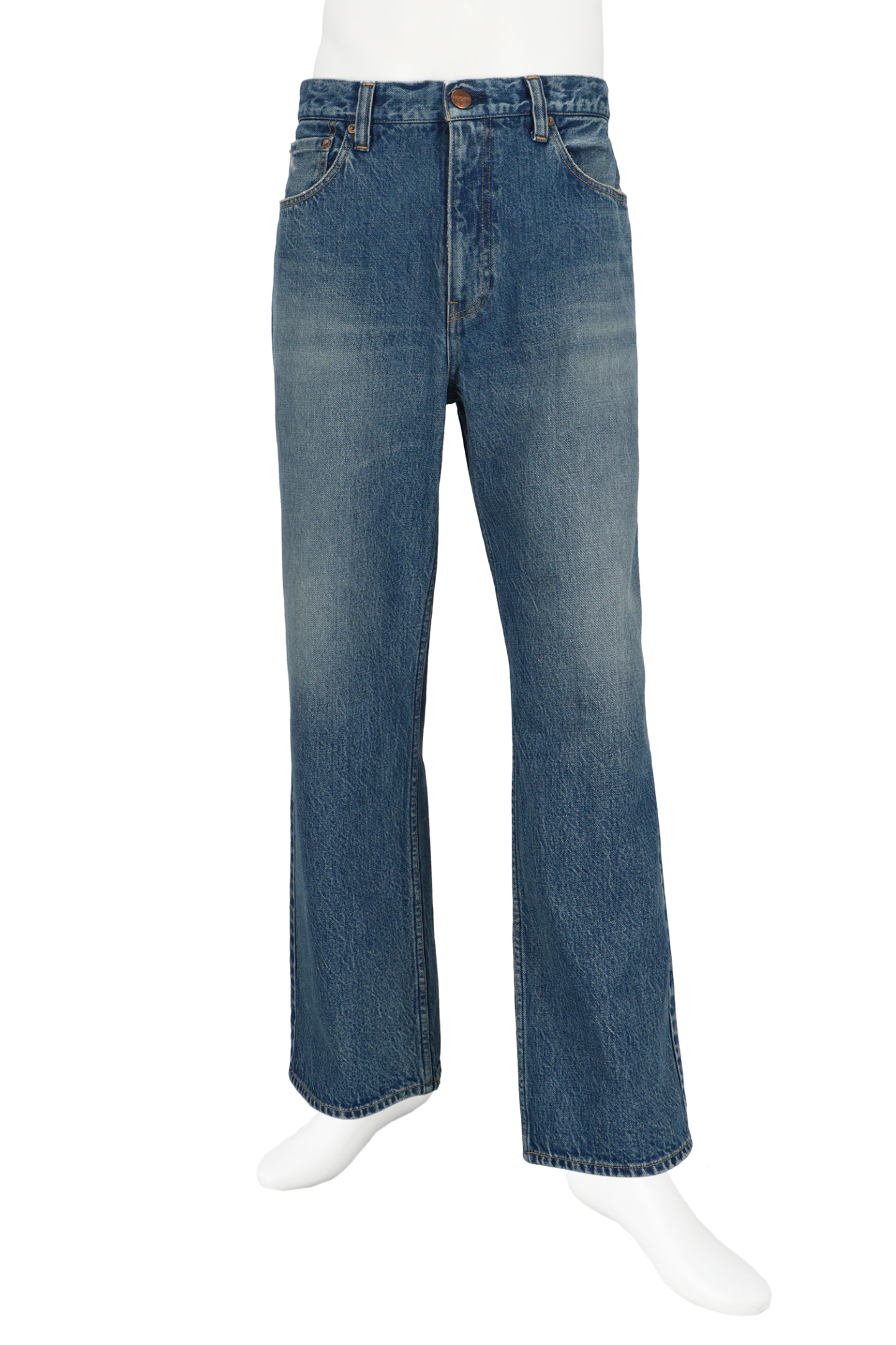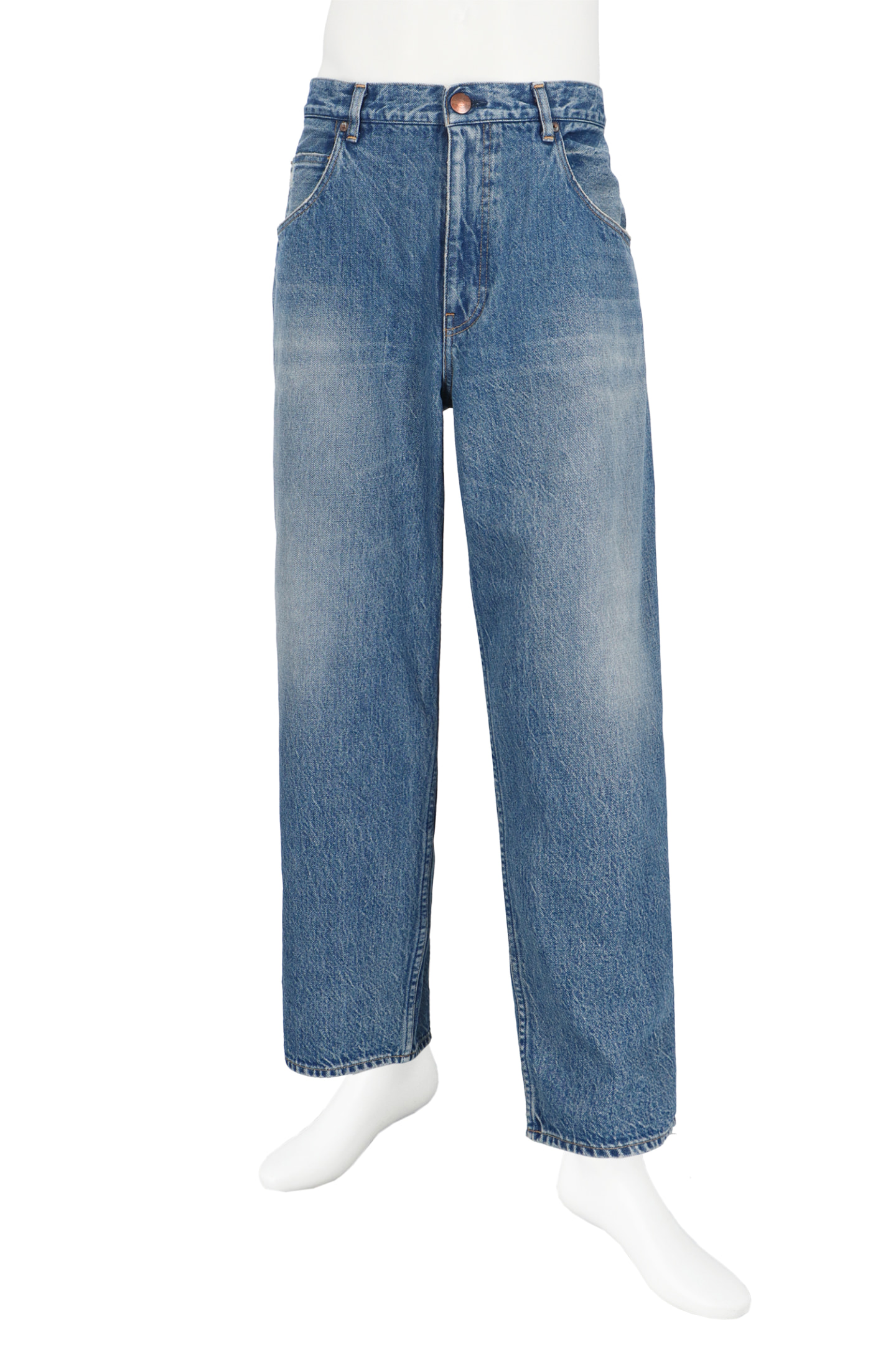 本コレクションでは、経糸・緯糸の双方にリターンコットンの糸を採用。鉱山跡地から発掘されたかのような、茶味を帯びたインディゴカラーを表現し、経年変化を想起させる風合いに仕上げている。独特のアタリや質感は、90年代デニムの無骨さを感じさせながら、RED CARD TOKYOらしい上品さも併せ持つ。