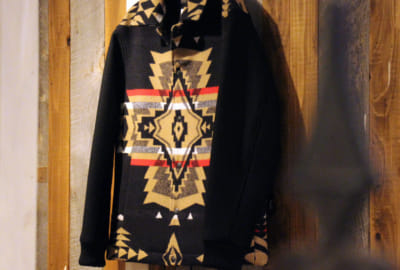 冬に用いられるブランケットに使用されるPendletonの象徴的なネイティブ・アメリカンモチーフの柄、デザインを、あえて春夏の素材で表現。コラボレーションアイテムには、Pendletonのブランケットに付されるものと同サイズのラベルに共同ロゴを冠して付けたり、サマーツイードやグログランテープ、プリーツなどを用いるなど、sacai ならではの様々な手法でPendletonの世界観を表現。ジャケット、パンツ、スカート、プルオーバー、シャツ、ソックス、バッグ、シューズに至るまであらゆるアイテムをMen’s, Women’sともに展開。
