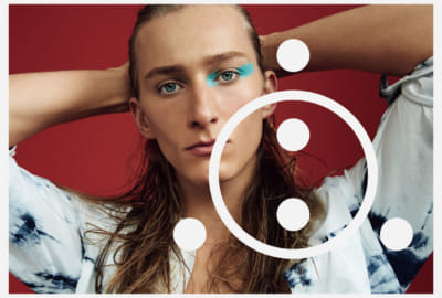 [THREE]を擁する[アクロ]より昨年ローンチした[FIVEISM × THREE]は、無限に広がる自己の可能性を引き出すメイク中心のメンズコスメブランド。EYESCREAMはそんな気鋭ブランドとタッグを組んで、連載企画 “Release your individuality” をスタート。ジェンダーレスにファッションを楽しむユースに向け、ファッションと同じようにメイクアップを楽しみ自己表現することを提案する。その第一弾として、次世代のシーンを担う二大バンド、DATSとYahyelでドラマーを務める大井一彌をモデルに、フォトシューティングを決行。ライブでは強靭なドラムプレイを見せる一方、中性的で優艶な雰囲気を醸し出す彼の、鮮やかな個性を切り取った。