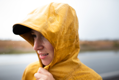 形態安定と撥水効果の高いファブリックを採用し、折り曲げ放題、濡れ放題を叶えたタフな一品。エレガントさを保ちつつ、折っても全く跡にならないのでカバンに入れて携帯できる。