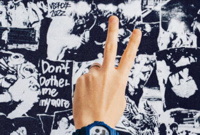 本モデルは、G-SHOCK の原点であるスクエアケースが特徴的な「DW-5600E-1」をベースに、FACETASM独自の視点で新しい表情へと昇華した。ブランド設立以来、タフネスを追求し進化し続けてきたG-SHOCK の機能面はそのままに、FACETASM らしい様々な要素をデザインに落とし込んだグラフィックがバンド部分とフェイス周りに施されている。