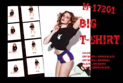 今回のコラボレーションの象徴であるスペシャルロゴとオフィシャルプレイメイトフォトと各種ロゴマークが配された特別なデザインのTシャツ。袖と背面に入るプリントは型によってすべて異なる。