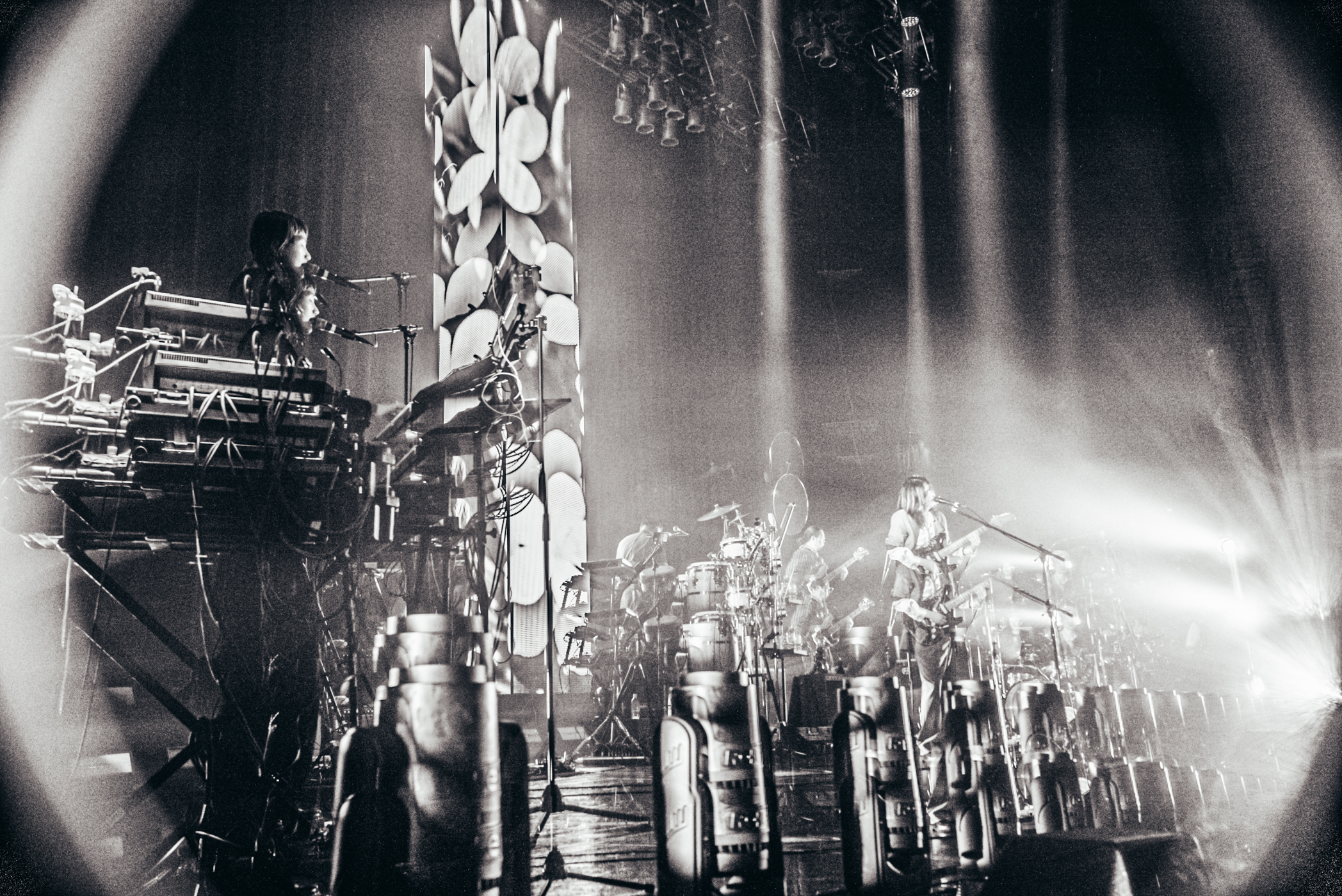 ライブ後半戦はこちらも『Naked 4 Satan』からの「Magic」でスタートし、多彩な展開やビートが盛り込まれながらも、ロマンチックで美しいメロディーが耳に残る。そこから一転してミニマルテクノのような雰囲気になると、「NEHAN」ではカラフルでポップな映像がクラブ的なパーティー感を演出し、そのまま「新世代」を駆け抜ける。二胡のオリエンタルな旋律が記憶の旅へと誘う「今世紀最大の夢」に続いては、ここで今回のツアーではこの日のみ、「革命前夜」を演奏するサプライズ。シンプルな照明がバンドの演奏の魅力をストレートに伝え、途中で手拍子が起こり、もうすぐツアーが終わるという寂しさと満足感が入り混じったような、特別な一体感が場内に生まれていた。ラストはTemeplayらしい美しさが凝縮された名曲「そなちね」。綾斗がギターソロからのシャウトを決めてまずステージを去り、残った5人が夏樹を中心に音を鳴らし終えると、それぞれがやり切った表情を浮かべて挨拶をして、ツアーファイナルが終了した。