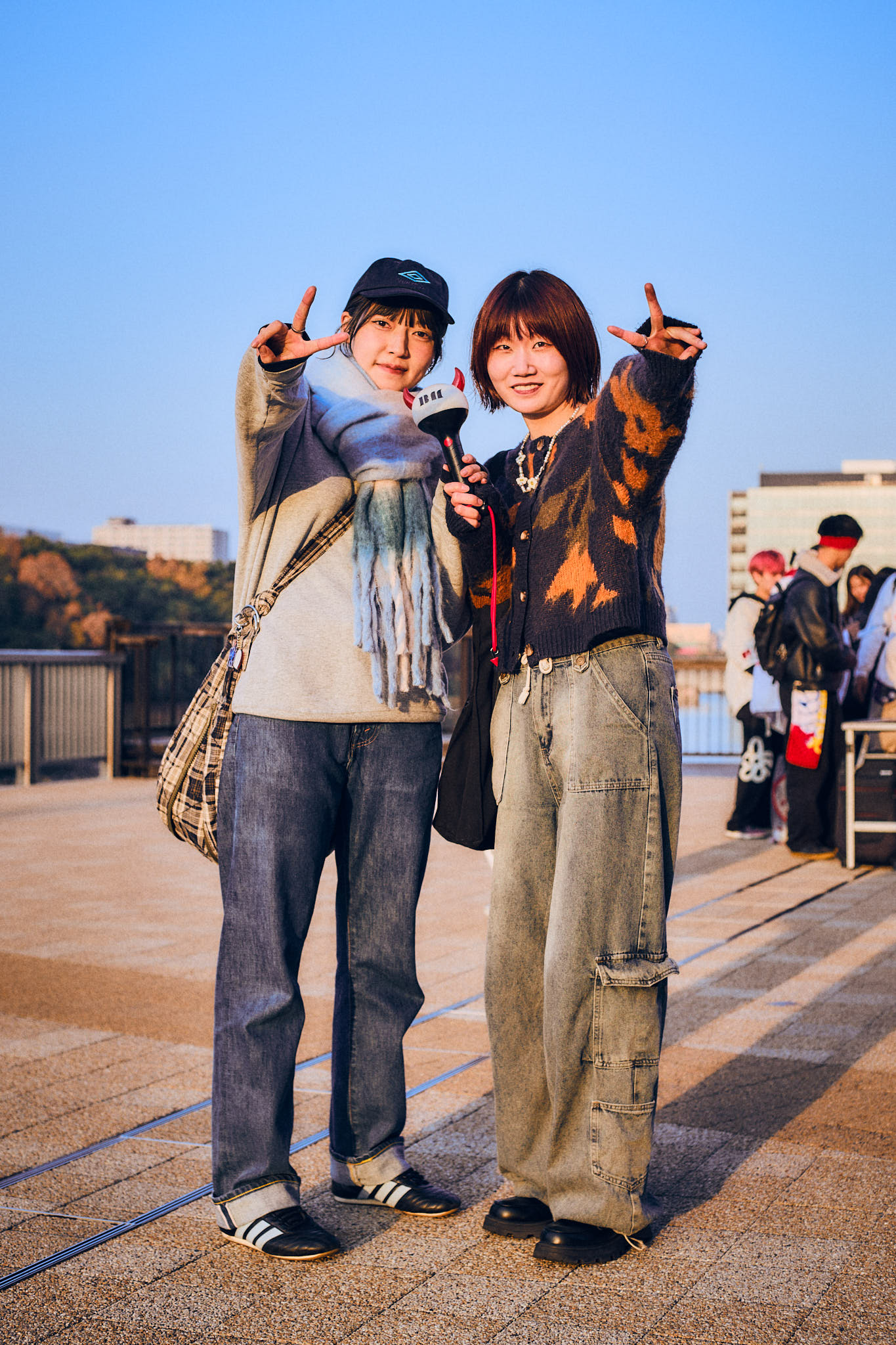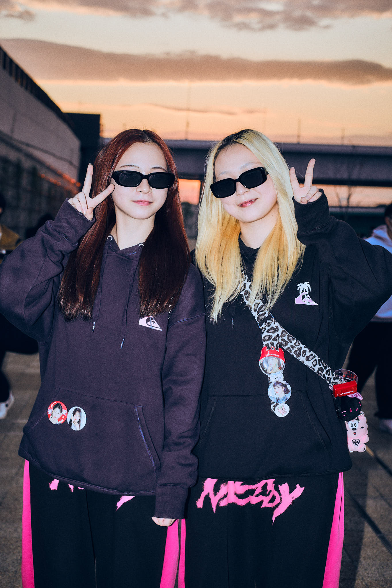 Q1. 23歳 / 23歳 Q2.看護師 / 会社員 Q3. 曲と生歌の強さ、声量の大きさ / 盛り上がる曲が多い Q4. ゼブラのセットアップ、青の爪 / パーカとバンダナ Q5. .ヒップホップ / YGエンターテインメント系アーティスト