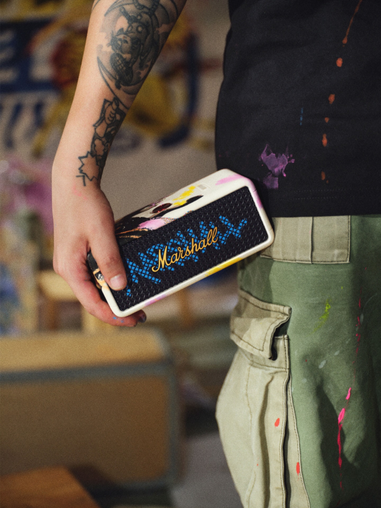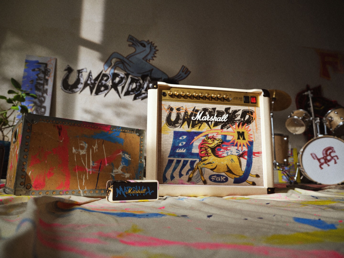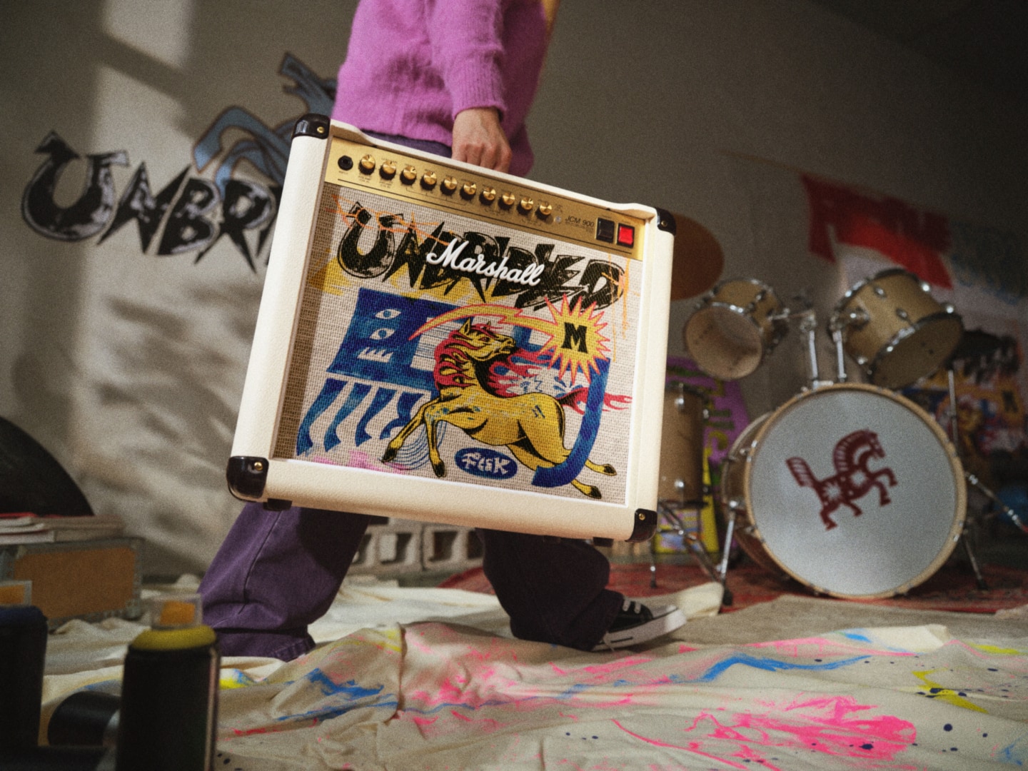 FCCKは、イラストやグラフィックパターン、タイポグラフィを組み合わせ、独自の世界観を構築するアーティスト。自由な表現を貫いてきた彼と、“自分らしさを貫くロックの精神”を体現するMarshallのビジョンが共鳴し、今回のプロジェクトへとつながった。