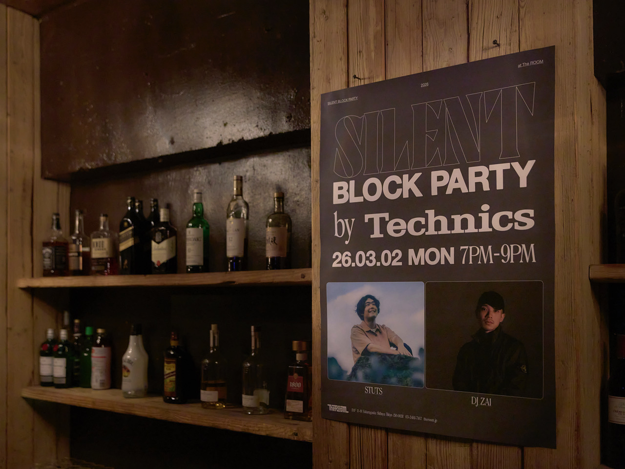 高音質・低遅延で同時に音を届けることができるBluetoothの新規格であるAuracastを用いた、“Technicsの新しい挑戦”として行われた本パーティー。来場者には入場時にTechnics ワイヤレスステレオインサイドホン EAH-AZ100が配布され、ライブやDJの音は発信機を通して直接そのイヤホンに届けられるという仕組みだ。つまりクラブでありながらスピーカーから音は鳴らない(=サイレント)。かつ、THE ROOMという小箱だからこそのキュッとした一体感、親密感はブロックパーティーさながらで。という不思議な熱気に満ちた一夜を、STUTSとDJ ZAI、そしてスペシャルゲストの北里彰久という出演3名のショートインタビューとともにレポートする。