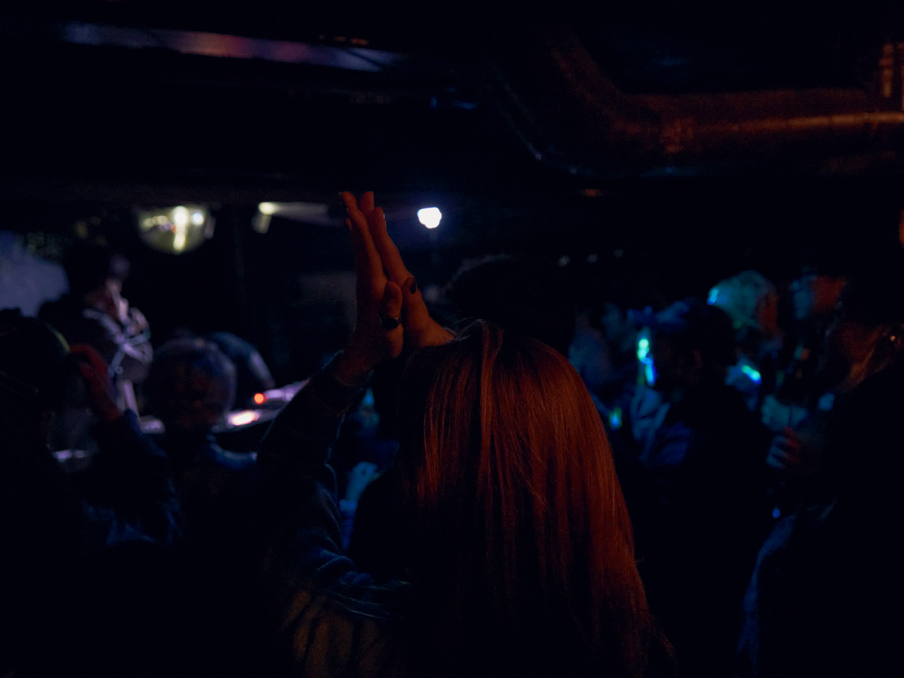 レコードを回す、MPCを叩くという極めてフィジカルな行為と、個々の耳元に直接届けられるパーソナルなリスニング体験。そのコントラストが、この夜の異様な没入感と臨場感を生み出していた。