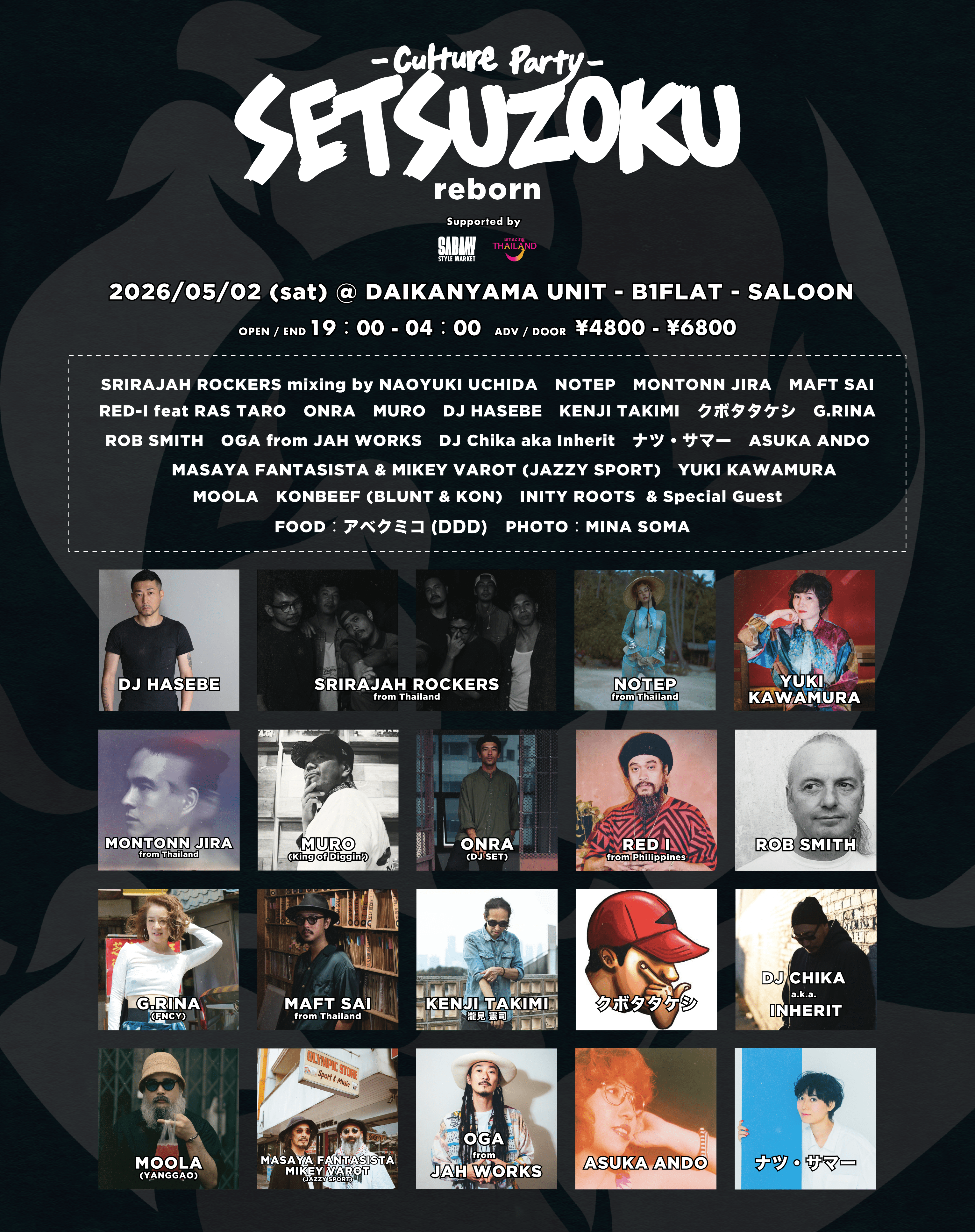 チケット:前売り ¥4,800 / 当日 ¥6,800(※ドリンク代別、未就学児入場不可)