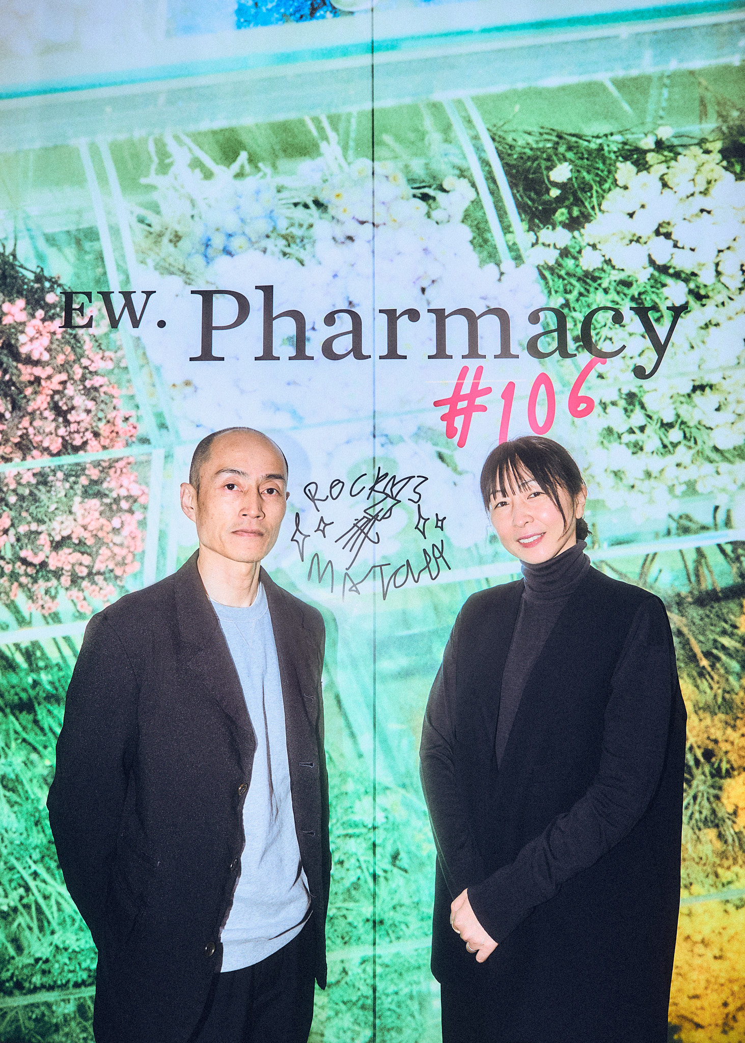 篠崎:これまでは富ヶ谷という場所で、少し年齢層の高いお客様に向けたアプローチでお花を提供していたのですが、移転、リニューアルという形でオープンした「EW.Pharmachy#106」は、原宿という次世代の方やインバウンドの方に向けた新しい試みとして、ロサンゼルスのティーカンパニー「rocky’s matcha」とコラボレーションしました。