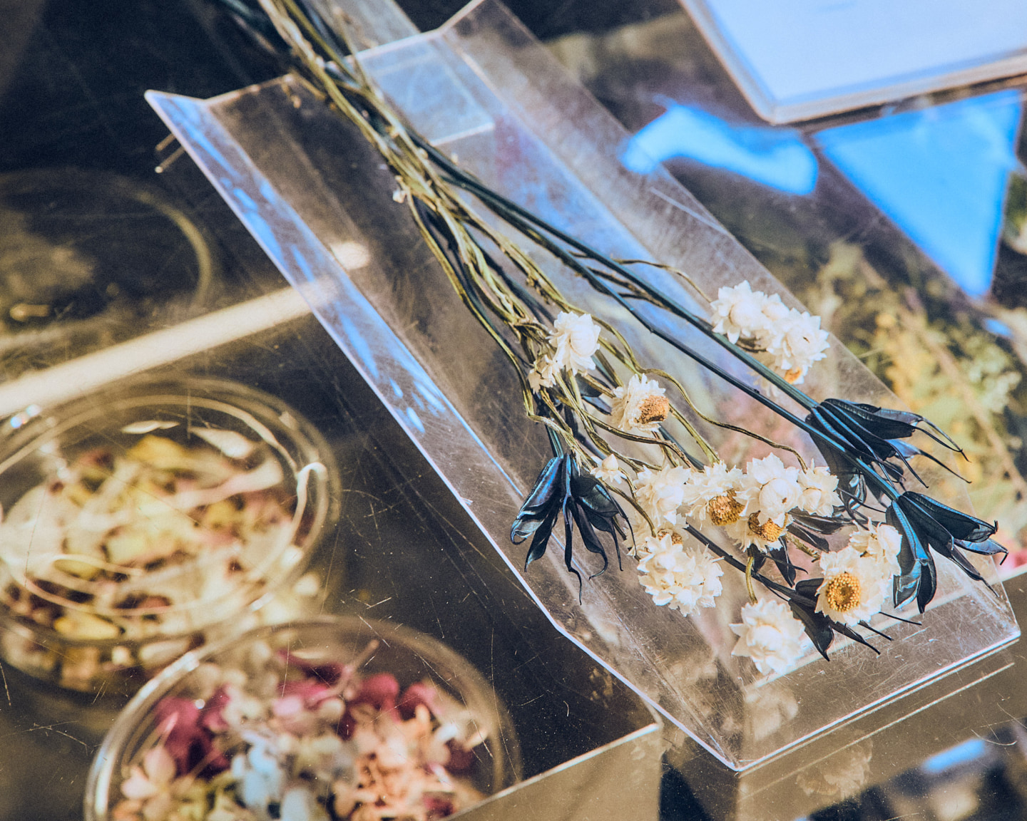 2026年3月、「原宿クエスト」にオープンしたドライフラワーショップ。調剤薬局の調合のごとく、カウンセリング後に要望に寄り添ったオンリーワンのフラワーアレンジメントをディレクションしてくれる。LA発のティースタンド「rocky’s matcha」も併設。