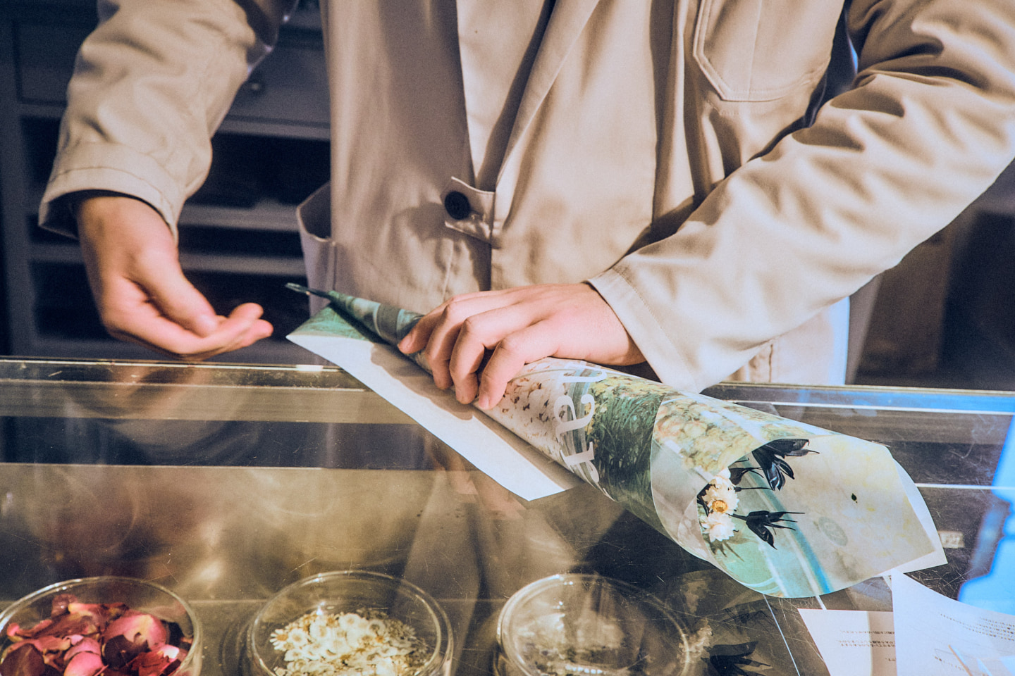 篠崎:あくまでもフラワーショップなので、ドリンクやフレグランスなど全てにおいて植物由来にこだわっています。抹茶を飲みに来られたインバウンドの方がドライフラワーに興味を持ってくださったり、逆にお花を買いに来た方が、「rocky’s matcha」を知ってくださったり。これまでにない広がりが体感できて新鮮です。